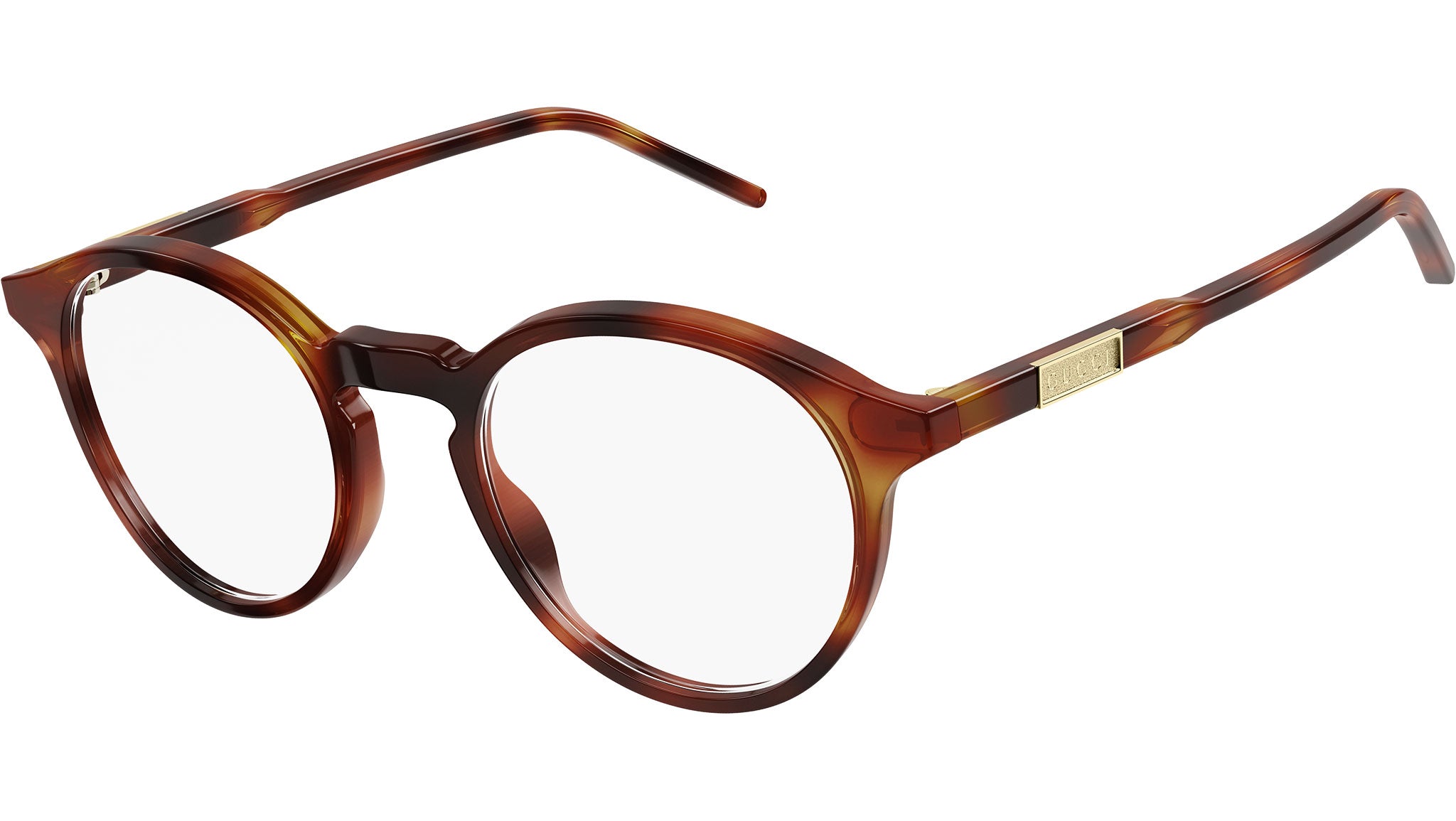 Occhiali da vista Gucci linea Gucci Logo modello GG1160O variante colore 003 avana biondo lucido con astine color tartaruga.