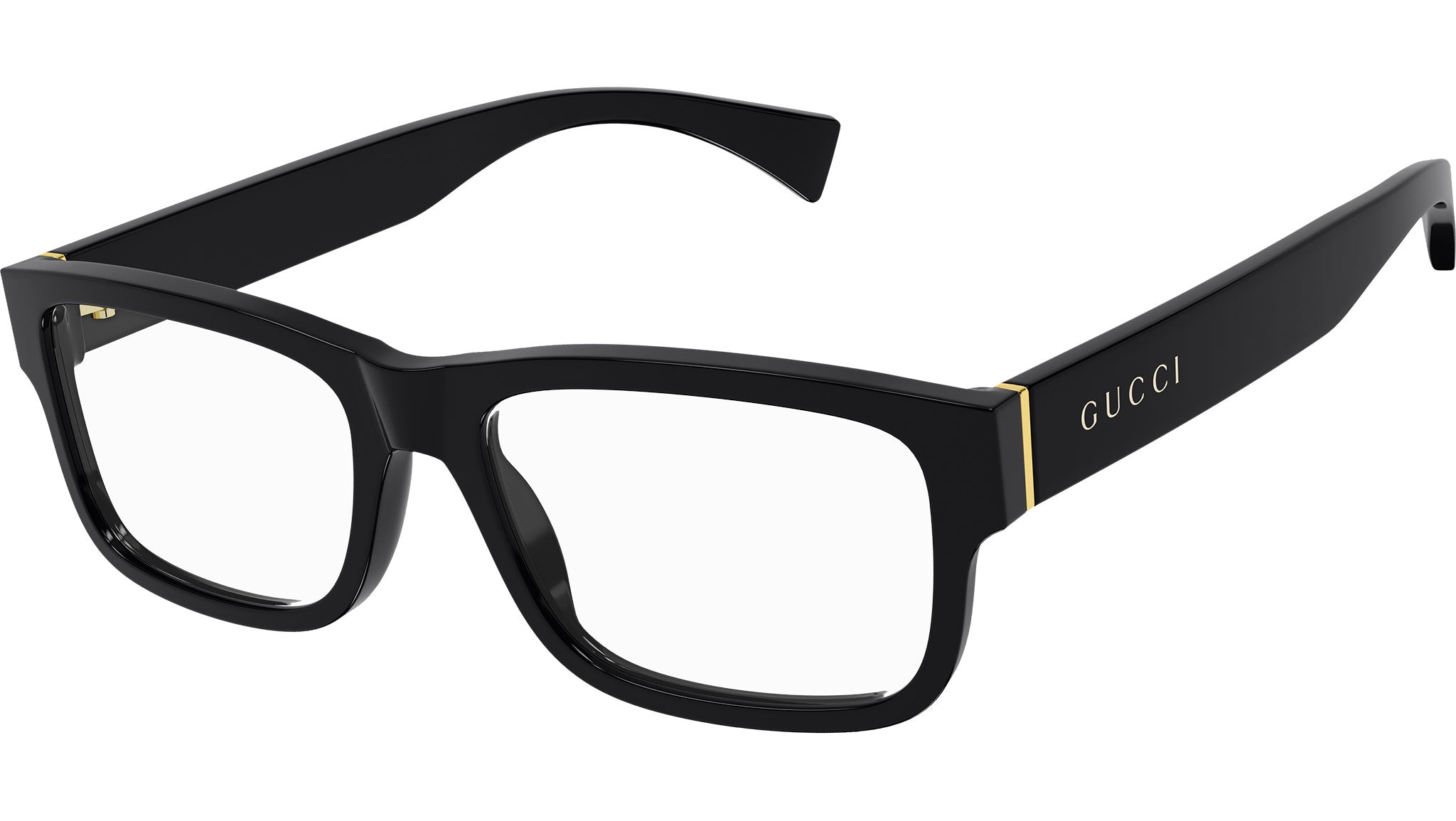 Occhiali da vista Gucci linea Gucci Logo modello GG1141O variante colore 001 nero lucido con astine color nero.