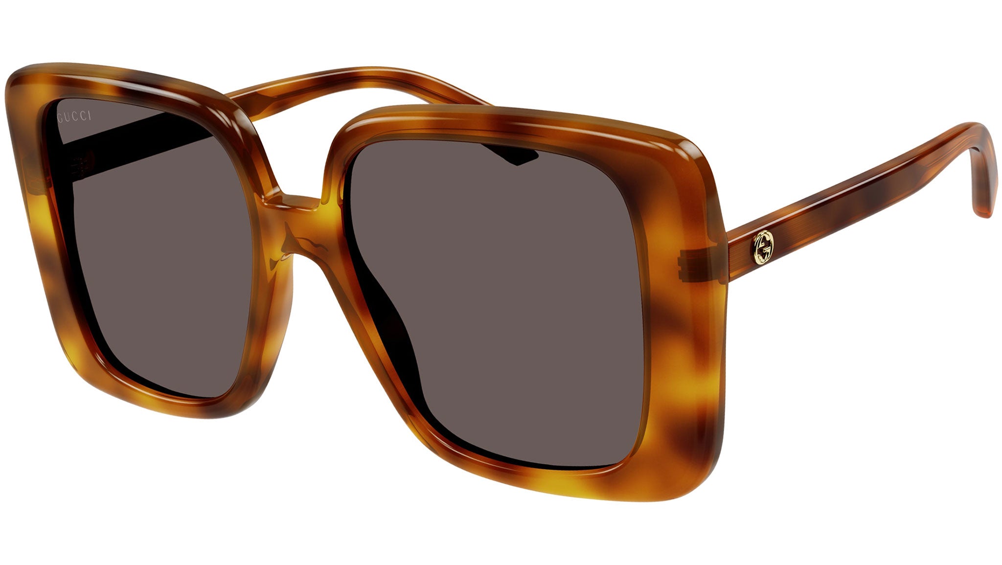 Occhiali da sole Gucci linea Gucci Logo modello GG1314S variante colore 002 avana biondo lucido con lenti color tartaruga.
