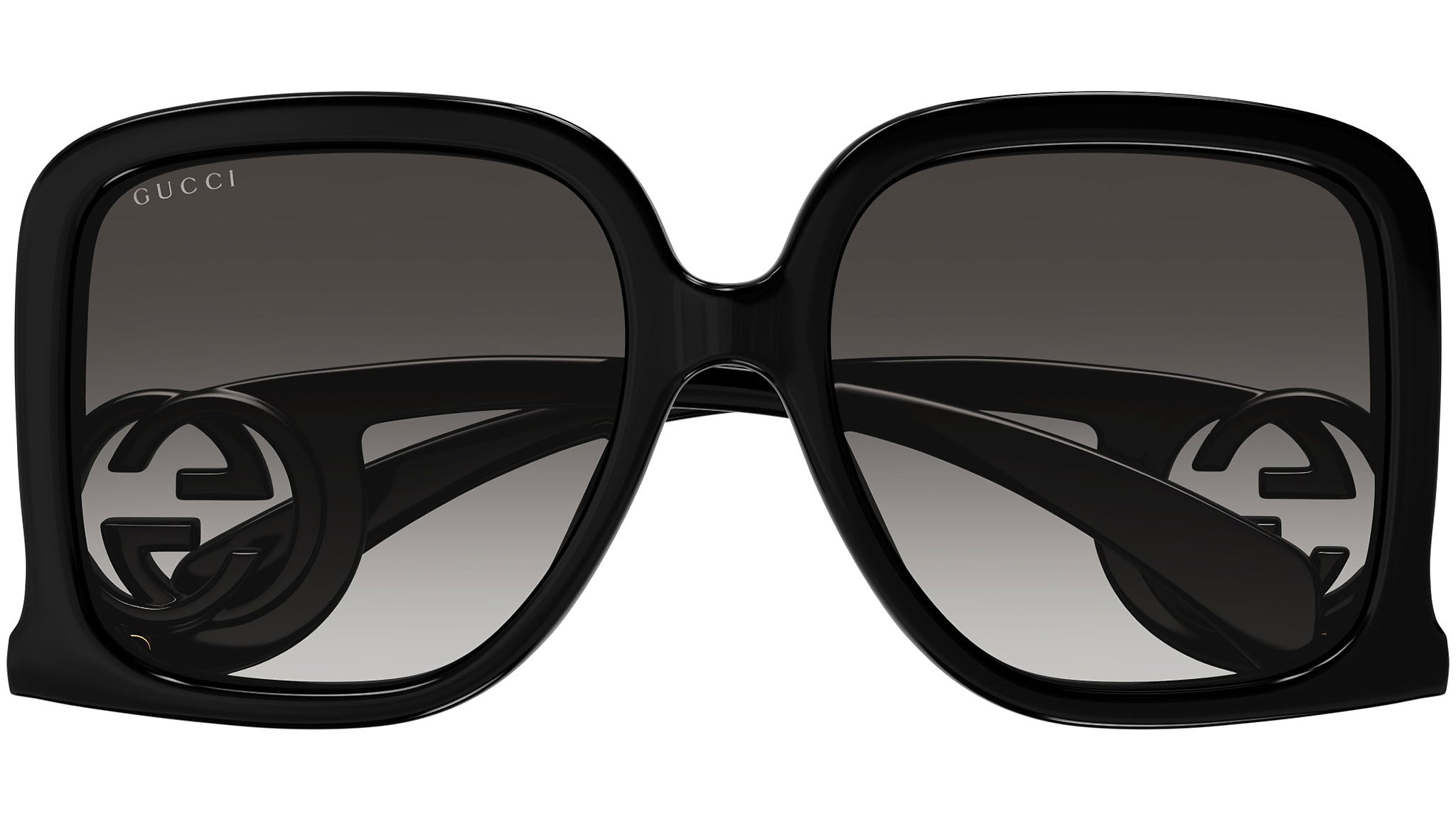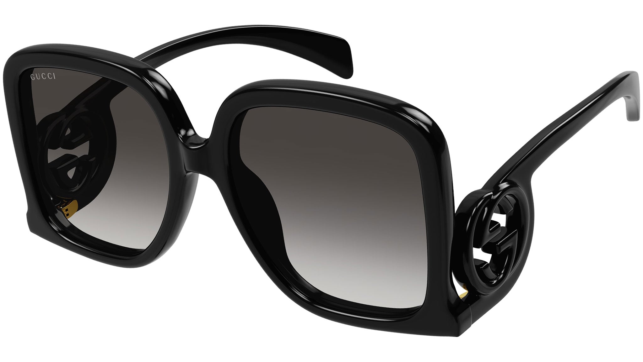 Occhiali da sole Gucci linea Fashion Inspired modello GG1326S variante colore 001 nero lucido con lenti color nero.