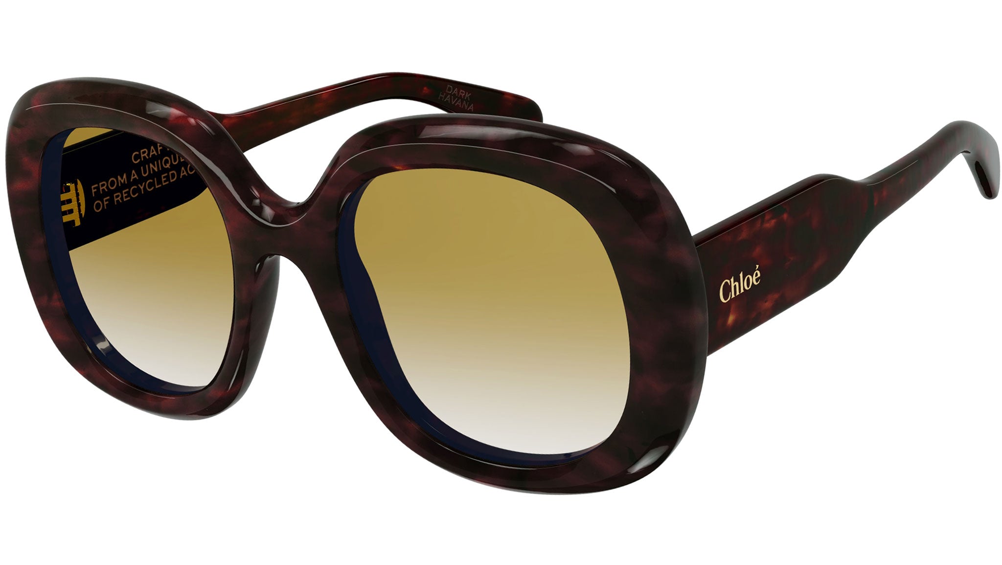 Occhiali da sole Chloé CH0153S 002 donna con montatura rettangolare in acetato riciclato avana scuro lucido e lenti marrone sfumato. Linea: Chloé. Codice modello: CH0153S. Codice colore: 002. Made in Italy. Rivenditore autorizzato Chloé online. Gli occhiali vengono consegnati con custodia e accessori originali e sono coperti dalla garanzia ufficiale di 12 mesi del produttore.