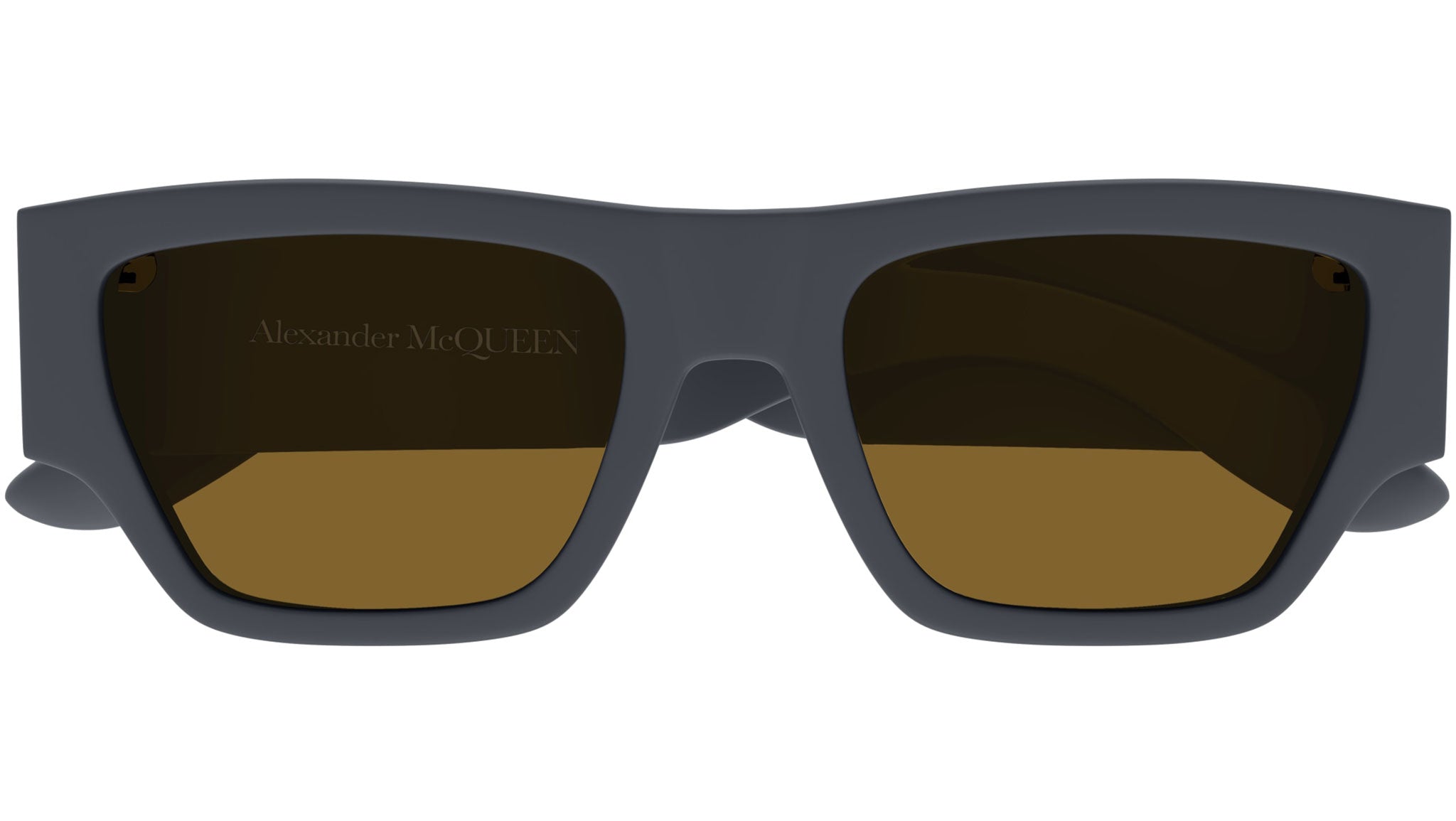 Occhiali da sole Alexander McQueen linea Casual Lines modello AM0393S variante colore 003 grigio scuro opaco tinta unita con lenti color beige nicotine tinta unita.