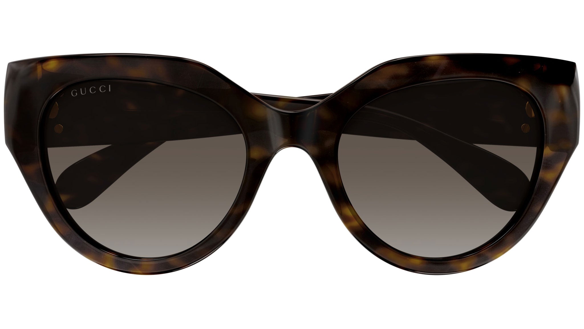 Occhiali da sole Gucci linea GG Logo modello GG1408S 003 in acetato riciclato avana lucido classico con aste color tartaruga e lenti marrone sfumato.