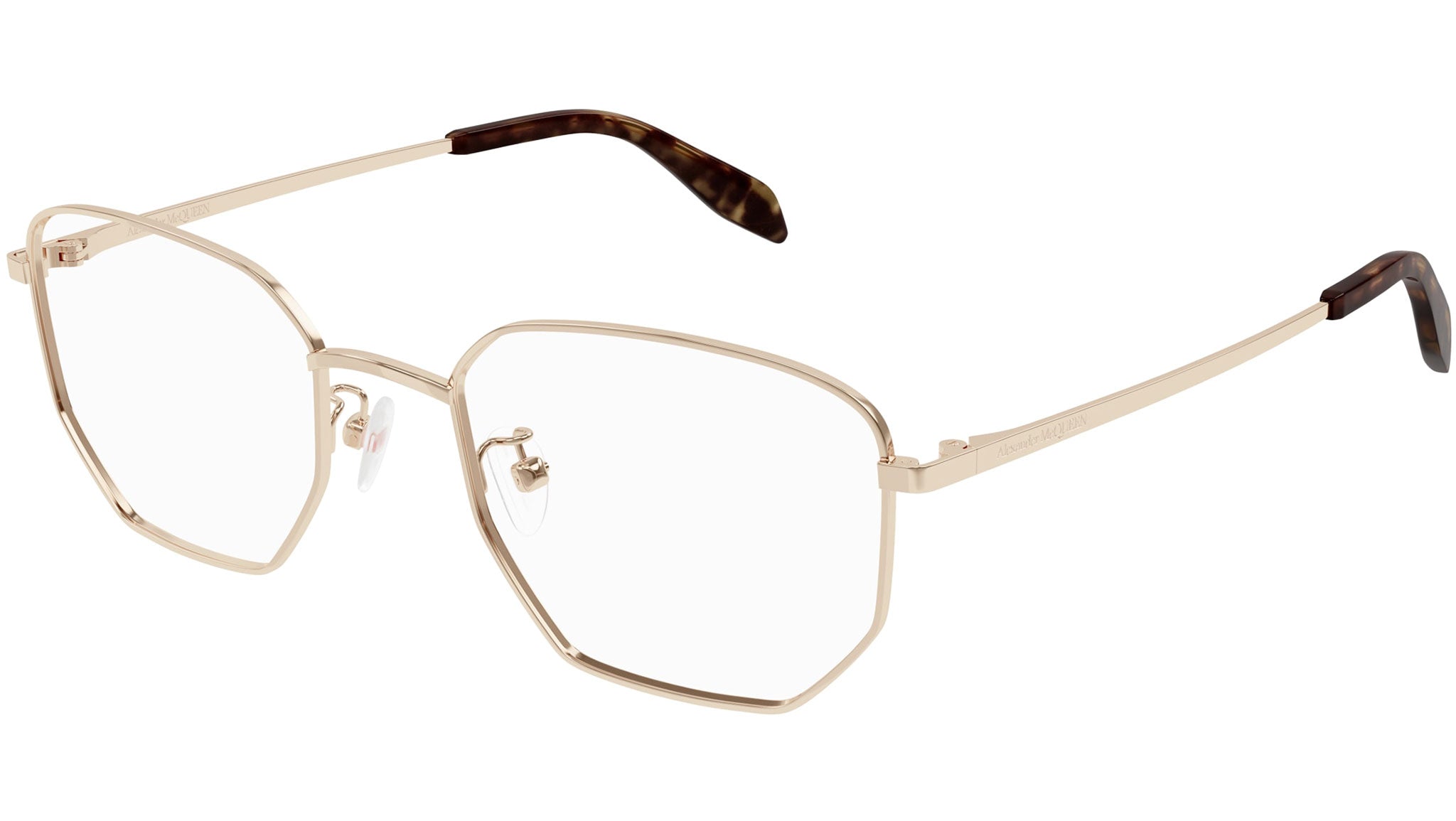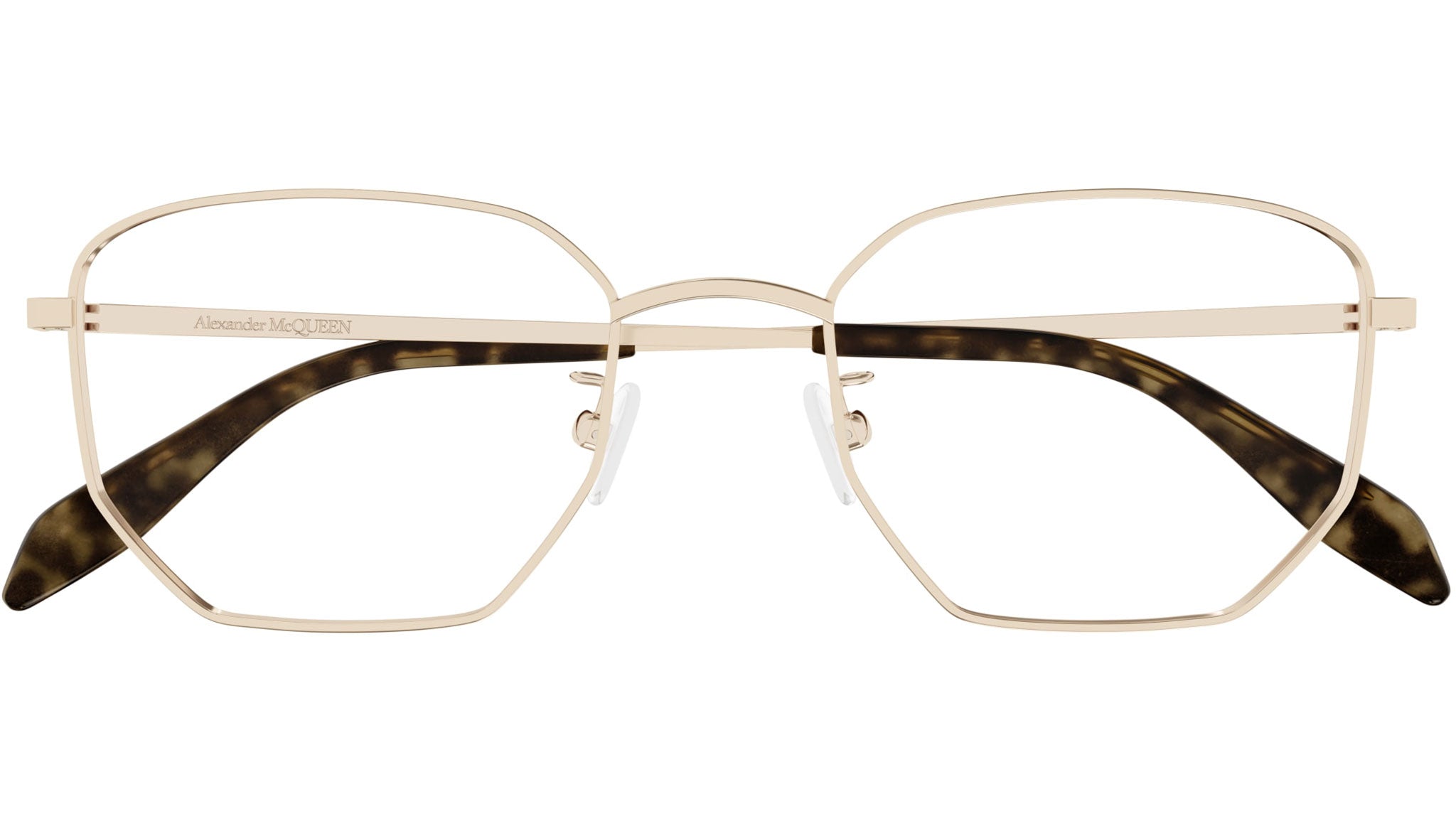 Occhiali da vista Alexander McQueen Casual Lines modello AM0438O rectangle in metallo codice colore 004 oro rosa lucido con aste oro e lenti demo.