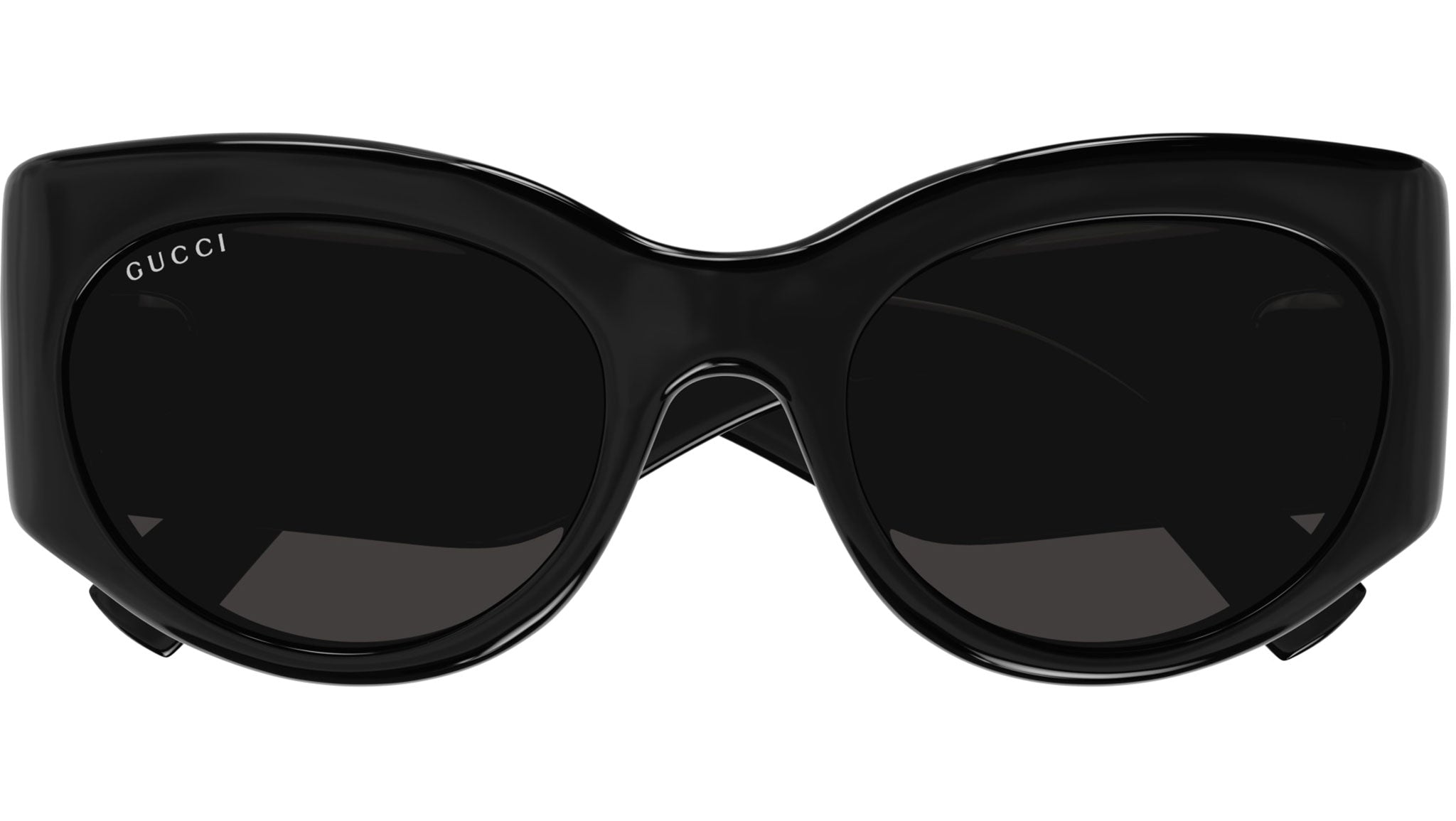 Occhiali da sole Gucci linea GG Logo modello GG1544S rettangolari in iniettato codice colore 001 nero lucido con aste nero e lenti color grigio tinta unita.