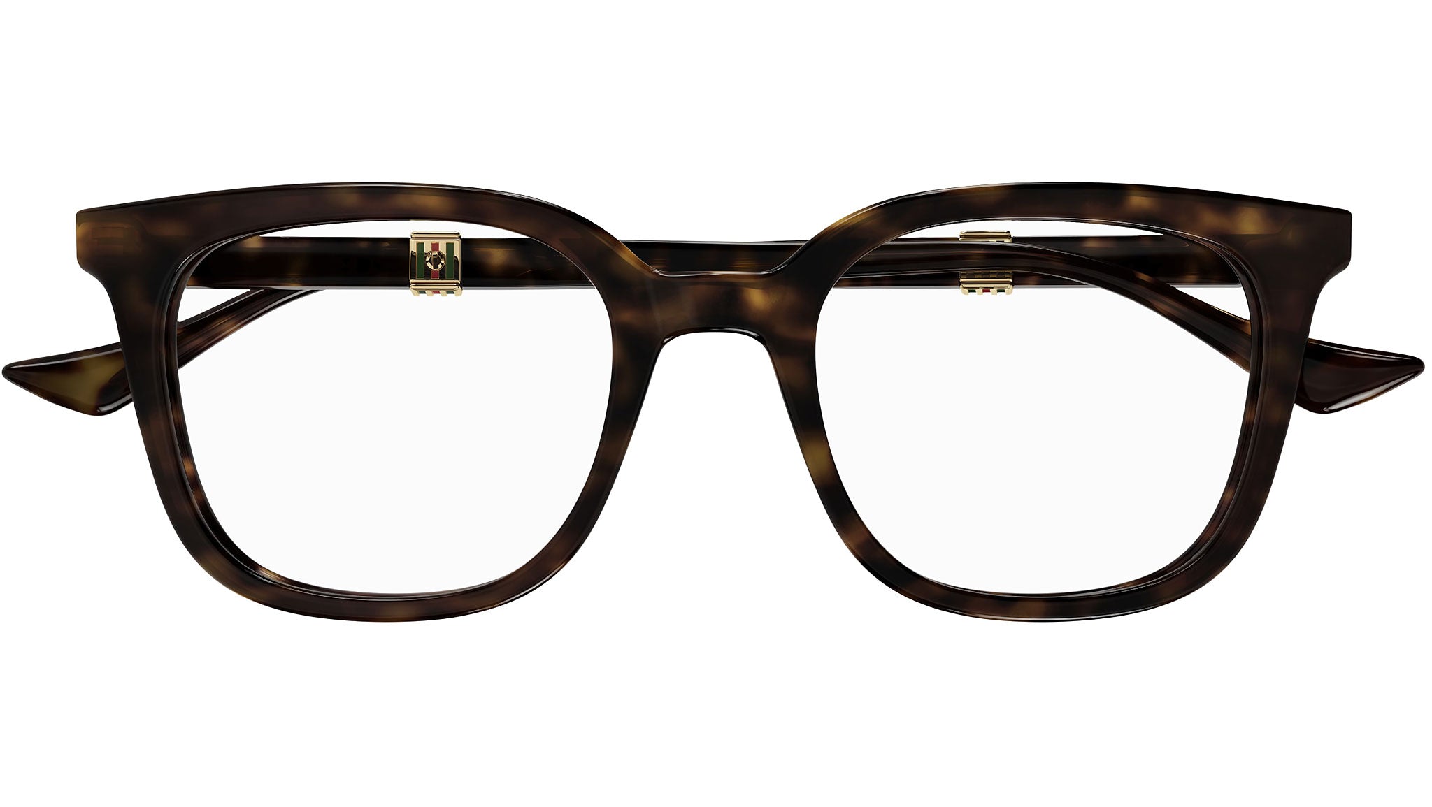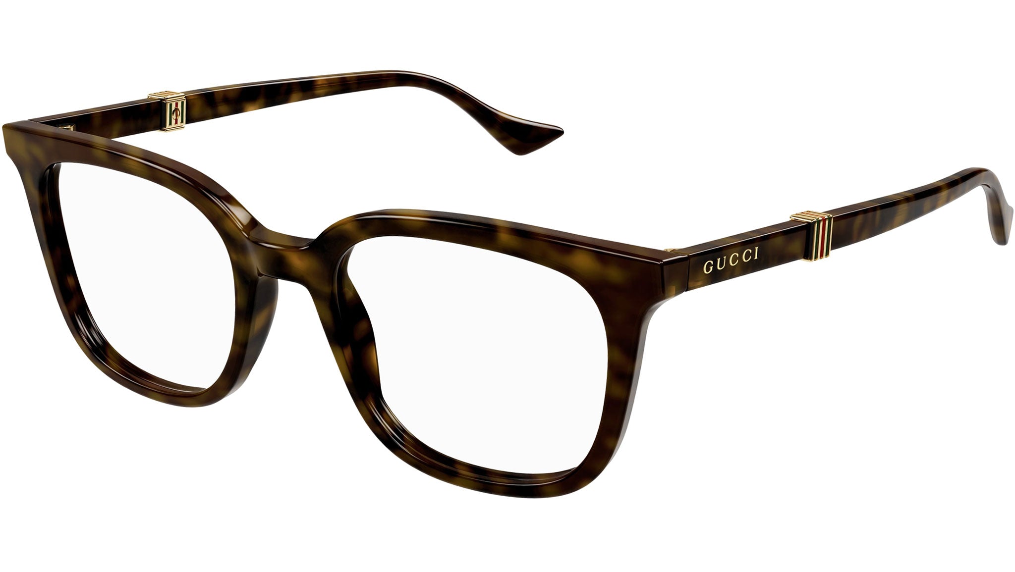 Occhiali da vista Gucci Web modello GG1497O rettangolari in acetato riciclato codice colore 002 tartaruga scuro lucido con astine tartaruga e lenti demo.