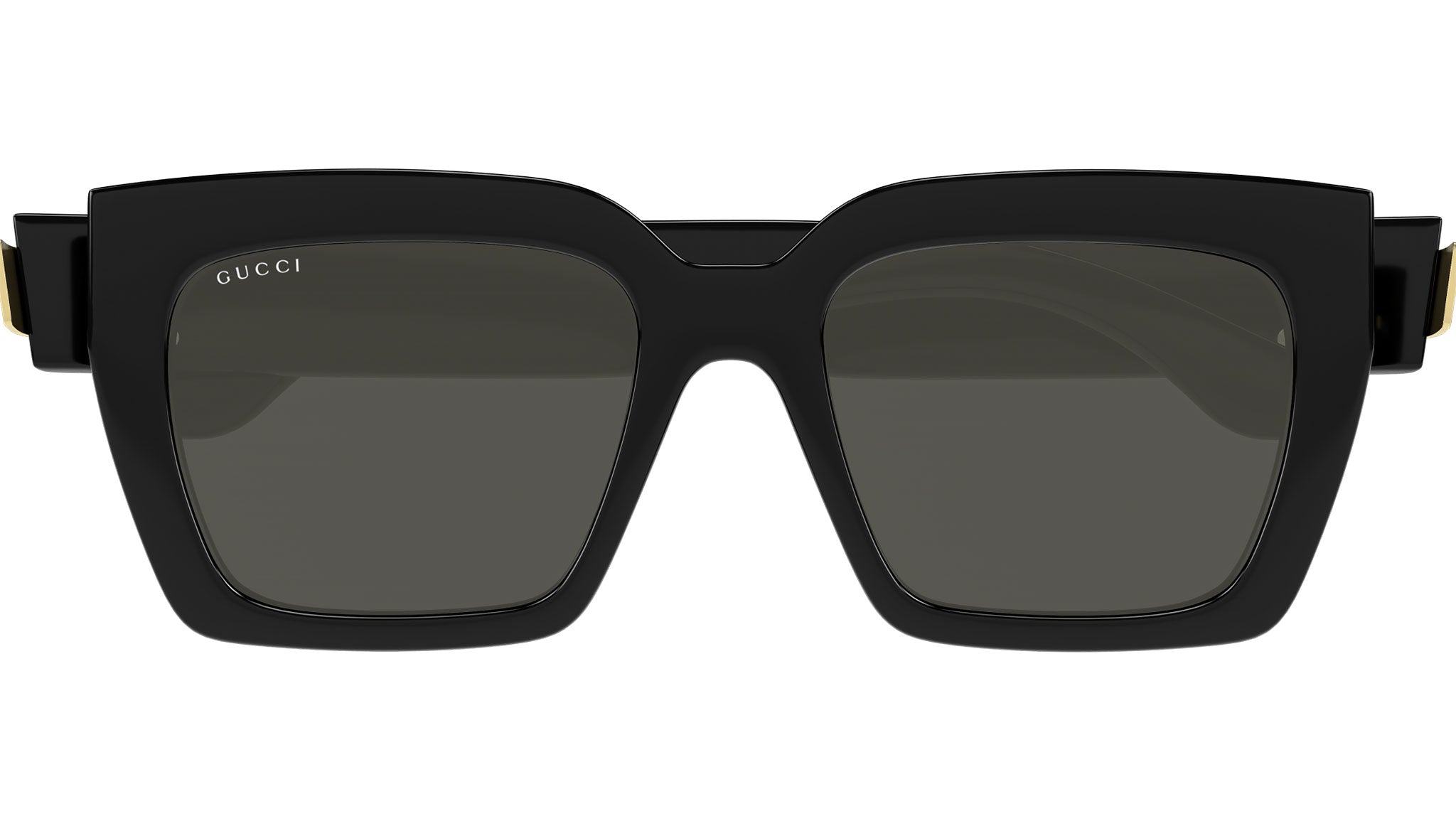 Occhiali da sole Gucci modello GG1689S linea GG Logo in iniettato forma a gatto codice colore 001 nero lucido con aste nero e lenti grigio tinta unita. Rivenditore autorizzato Gucci online. Gli occhiali vengono consegnati con custodia e accessori originali e sono coperti dalla garanzia ufficiale di 12 mesi del produttore.