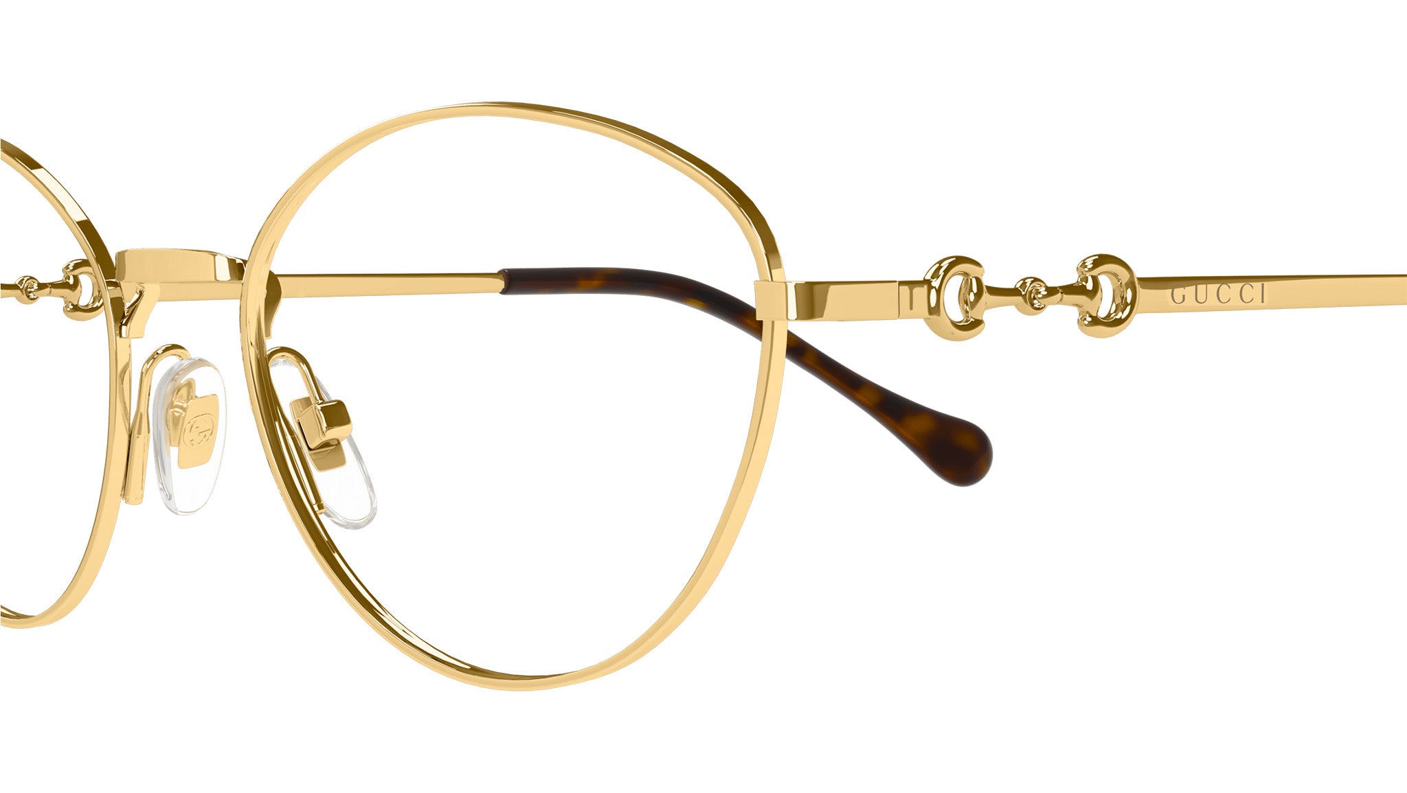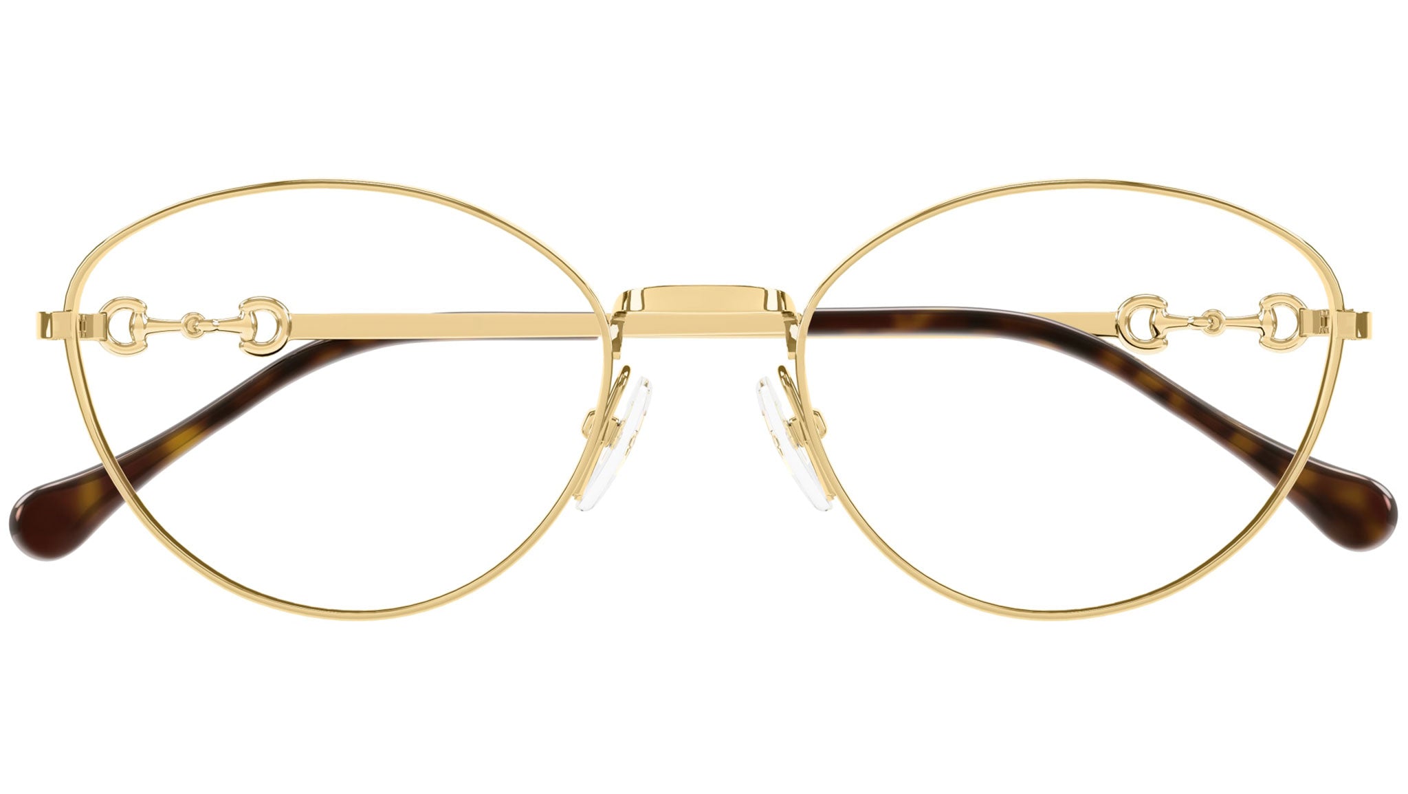 Occhiali da vista Gucci modello GG1699O linea Horsebit in metallo forma a gatto codice colore 001 oro endura lucido con aste in oro e lenti demo. Rivenditore autorizzato Gucci online. Gli occhiali vengono consegnati con custodia e accessori originali e sono coperti dalla garanzia ufficiale di 12 mesi del produttore.