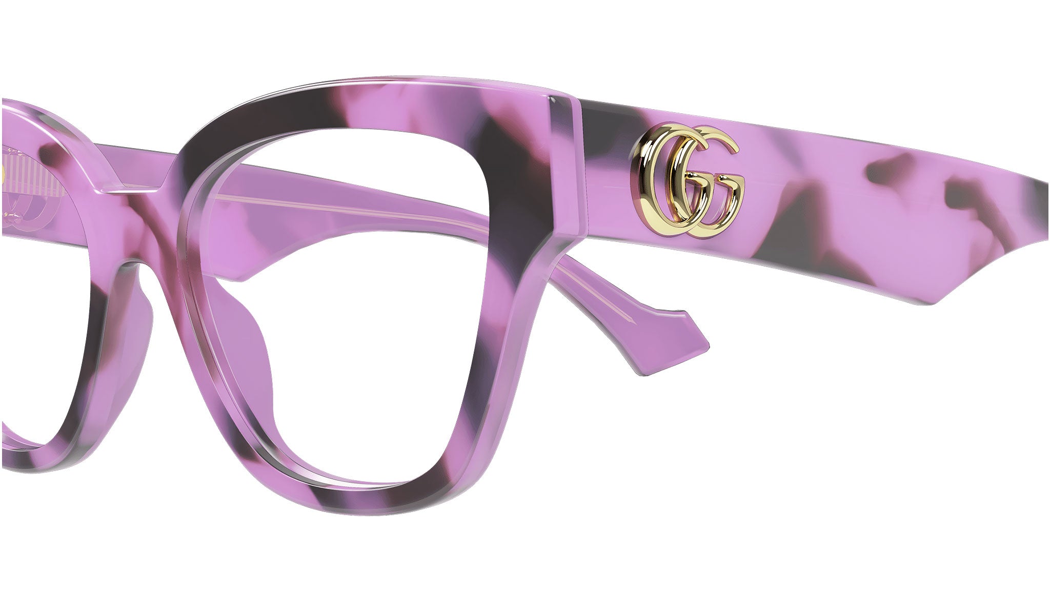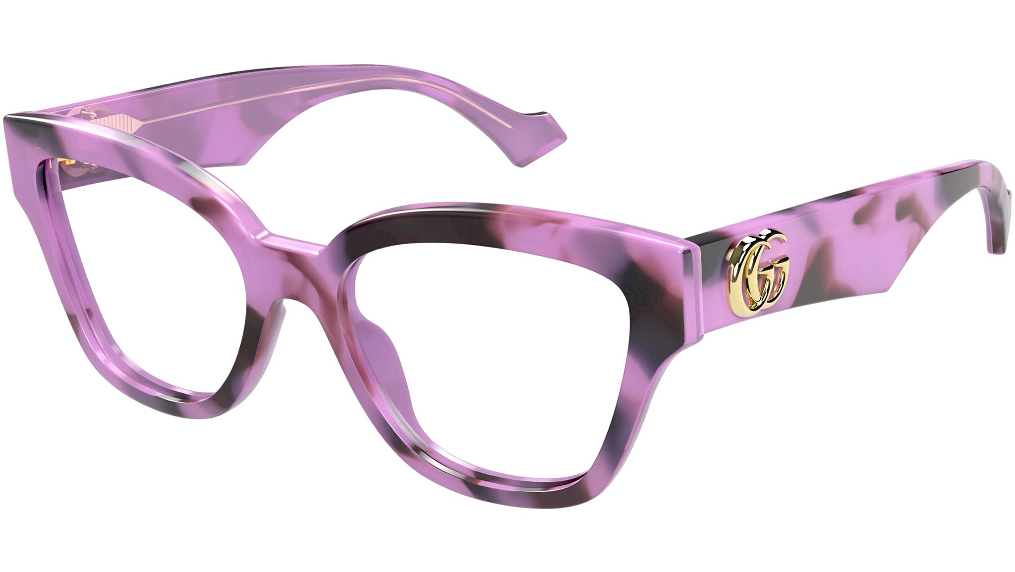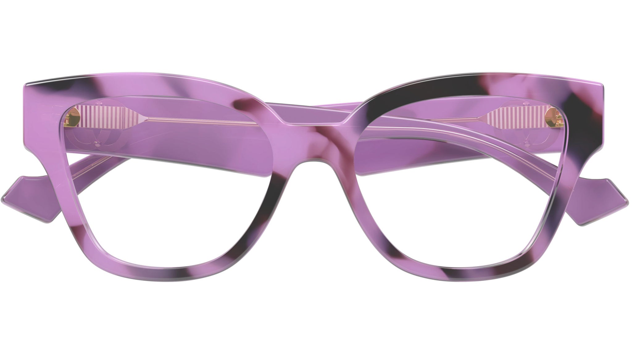 Occhiali da vista Gucci modello GG1424O linea GG Logo in acetato riciclato forma pantos opale lucido liliaco e avana nero con aste in viola e lenti demo. Rivenditore autorizzato Gucci online. Gli occhiali vengono consegnati con custodia e accessori originali e sono coperti dalla garanzia ufficiale di 12 mesi del produttore.