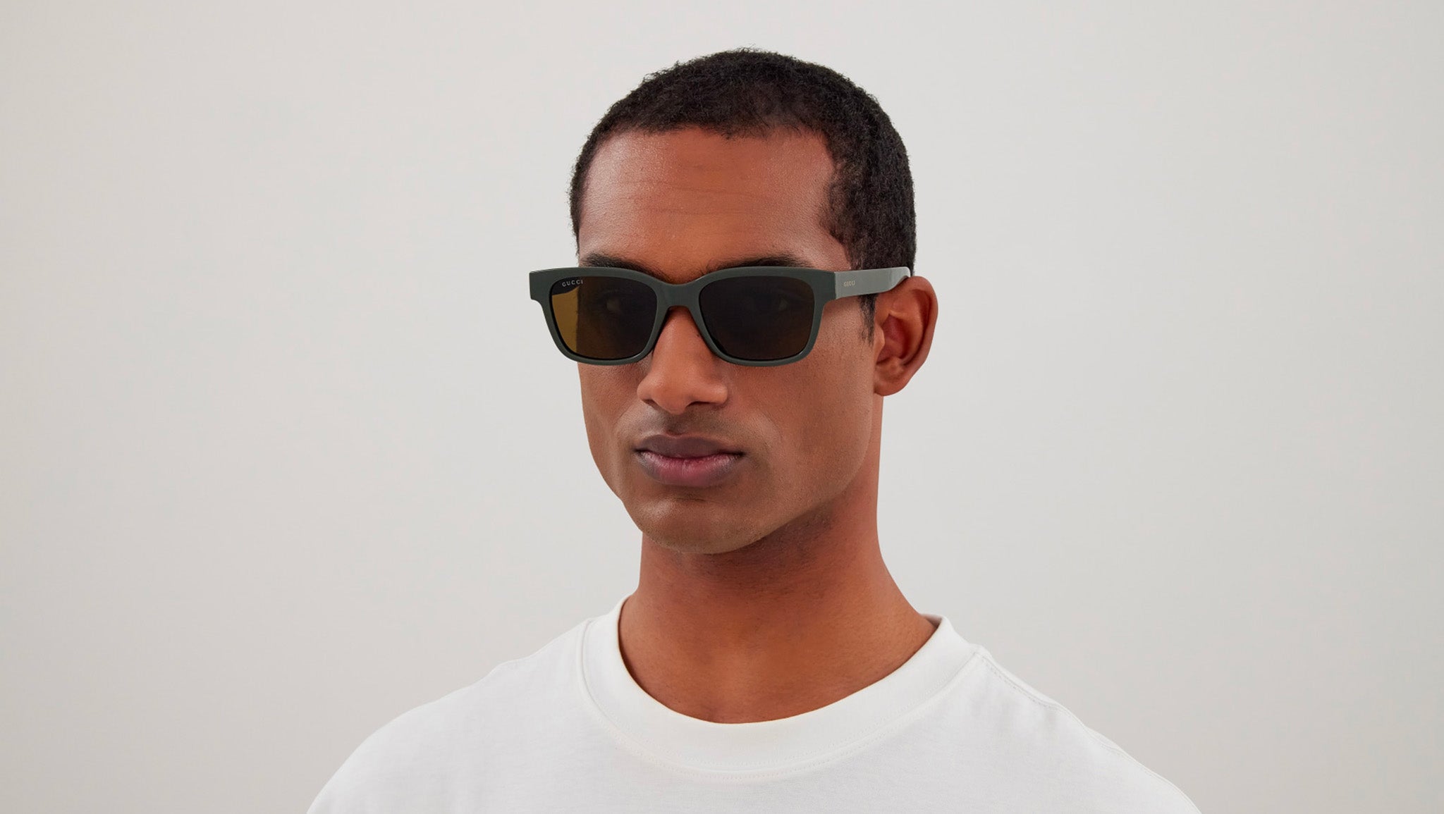 Occhiali da sole Gucci modello GG1716S linea Lettering in iniettato forma rettangolare codice colore 004 verde scuro tinta unita lucido con aste verde e lenti marrone tinta unita. Rivenditore autorizzato Gucci online. Gli occhiali vengono consegnati con custodia e accessori originali e sono coperti dalla garanzia ufficiale di 12 mesi del produttore.
