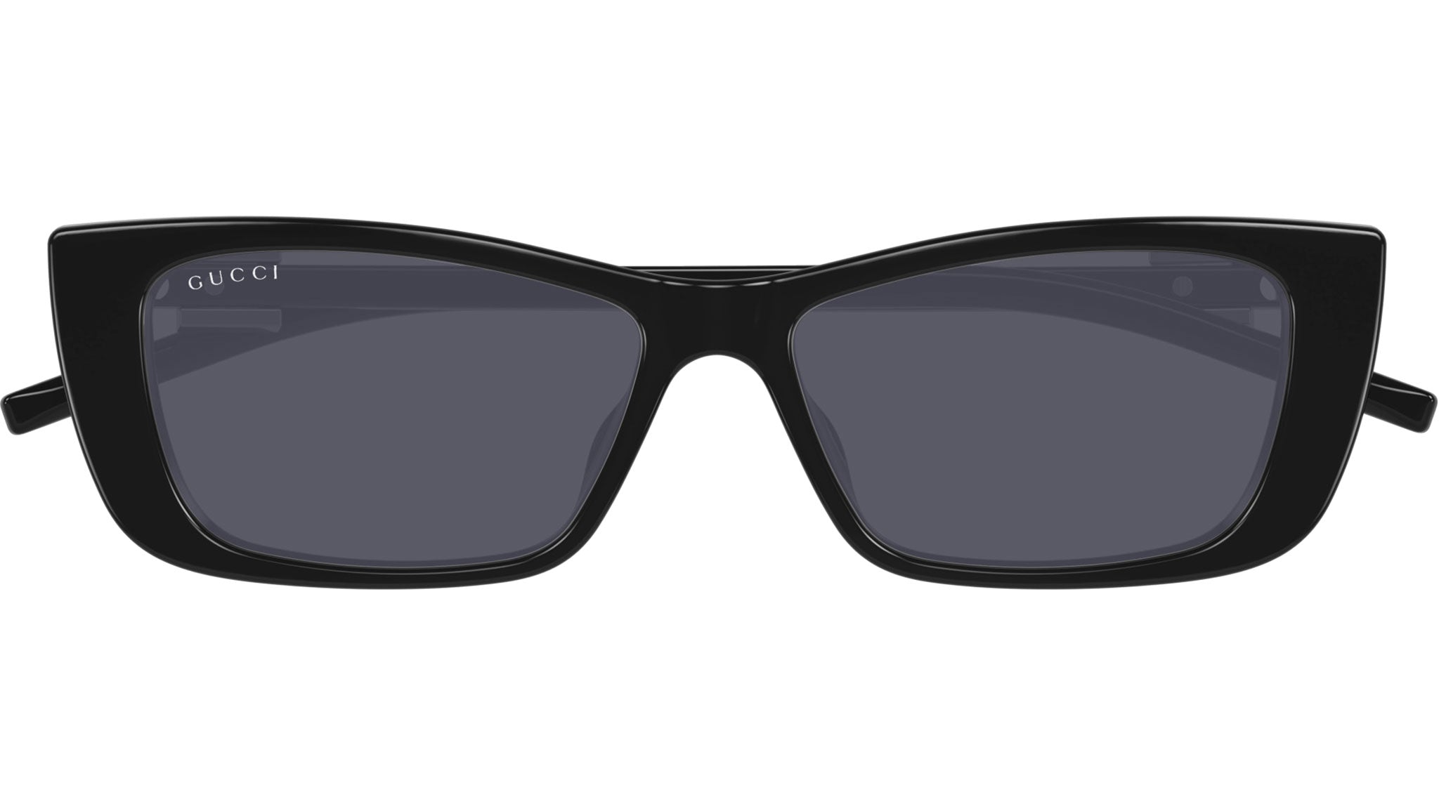 Occhiali da sole Gucci modello GG1681S linea GG Logo in iniettato forma a gatto codice colore 008 nero lucido con aste nero e lenti grigio tinta unita. Rivenditore autorizzato Gucci online. Gli occhiali vengono consegnati con custodia e accessori originali e sono coperti dalla garanzia ufficiale di 12 mesi del produttore.