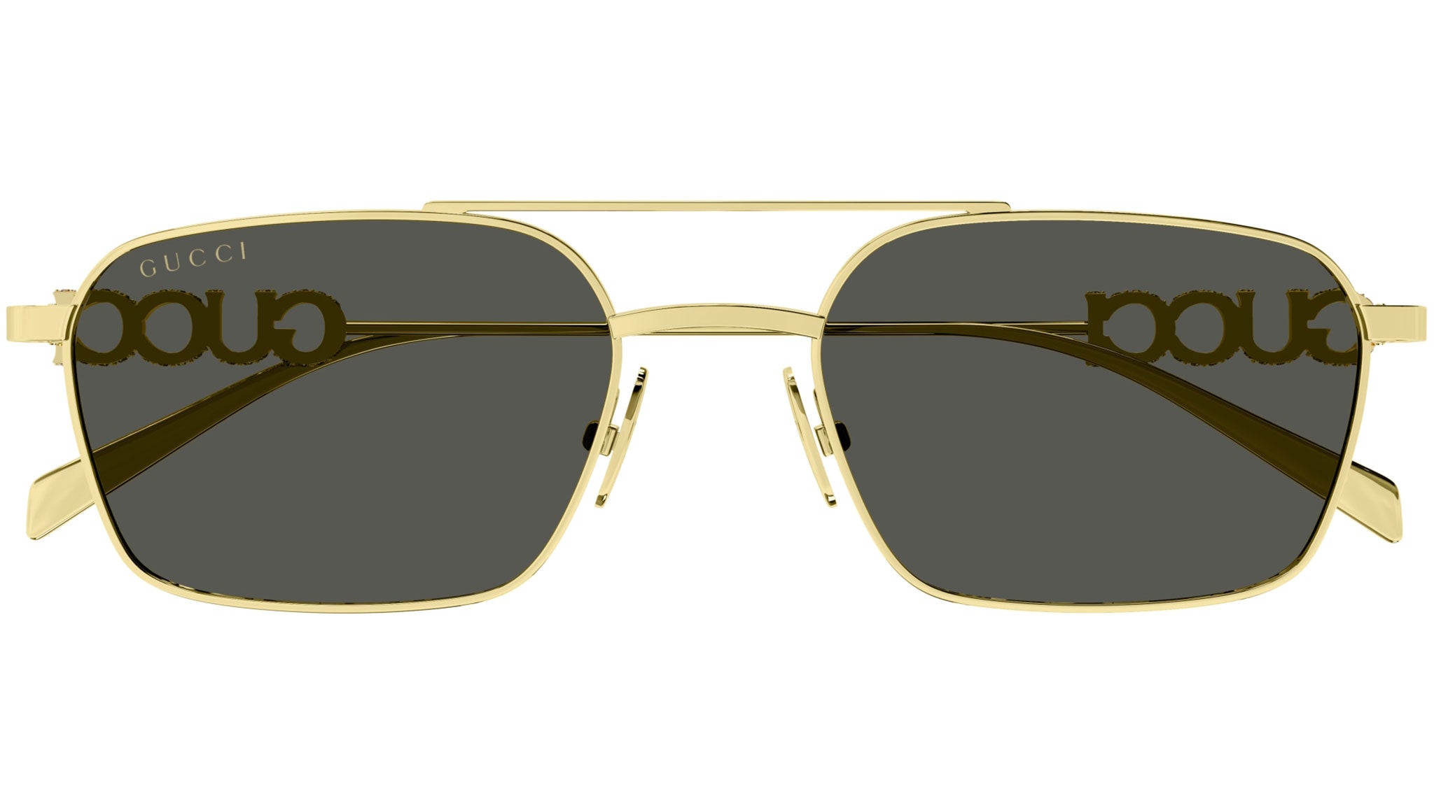 Occhiali da sole Gucci GG1804S 001 donna con montatura rettangolare in metallo oro giallo e lenti grigio tinta unita. Linea: Lettering. Codice modello: GG1804S. Codice colore: 001. Made in Japan. Rivenditore autorizzato Gucci online. Gli occhiali vengono consegnati con custodia e accessori originali e sono coperti dalla garanzia ufficiale di 12 mesi del produttore.