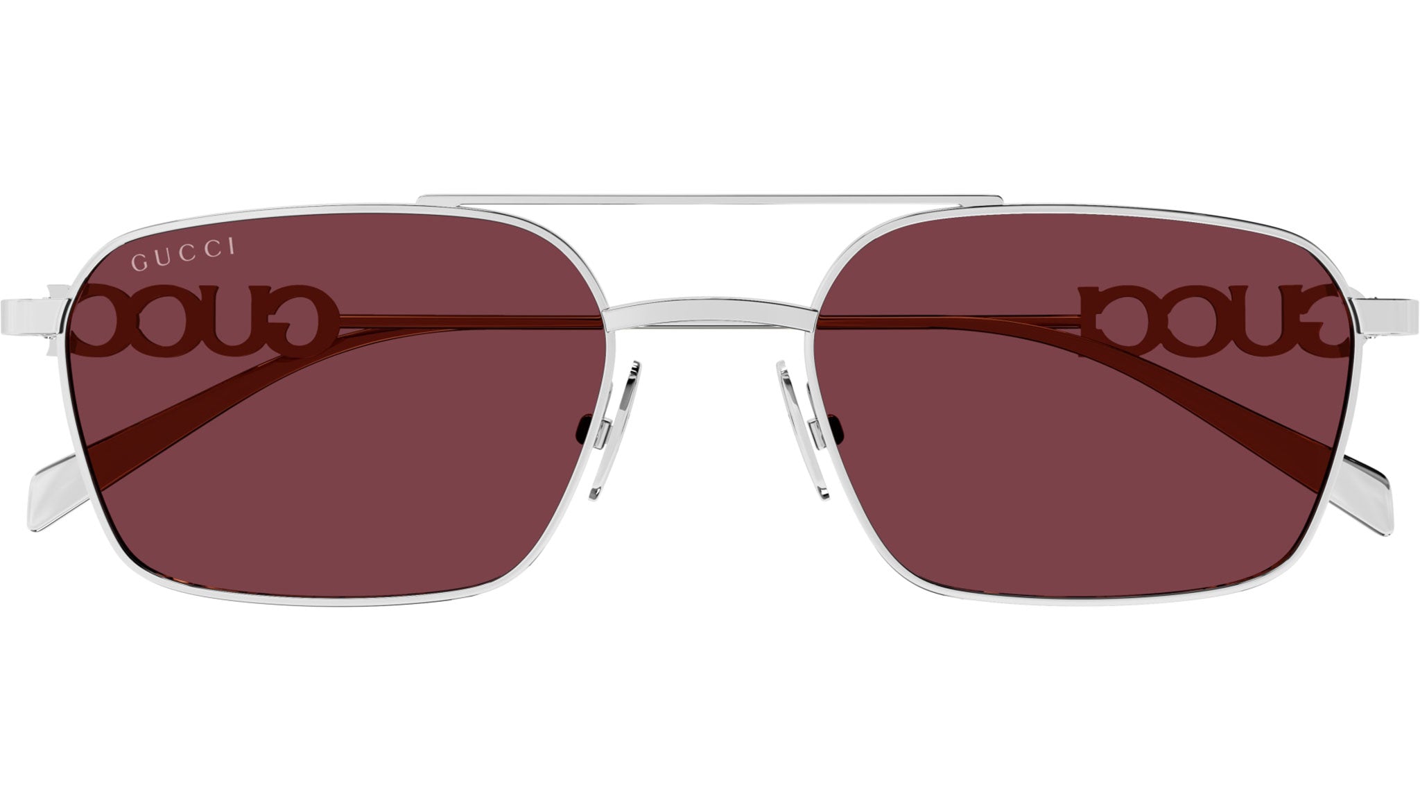 Occhiali da sole Gucci GG1804S 004 donna con montatura rettangolare in metallo argento e lenti borgogna tinta unita. Linea: Lettering. Codice modello: GG1804S. Codice colore: 004. Made in Japan. Rivenditore autorizzato Gucci online. Gli occhiali vengono consegnati con custodia e accessori originali e sono coperti dalla garanzia ufficiale di 12 mesi del produttore.