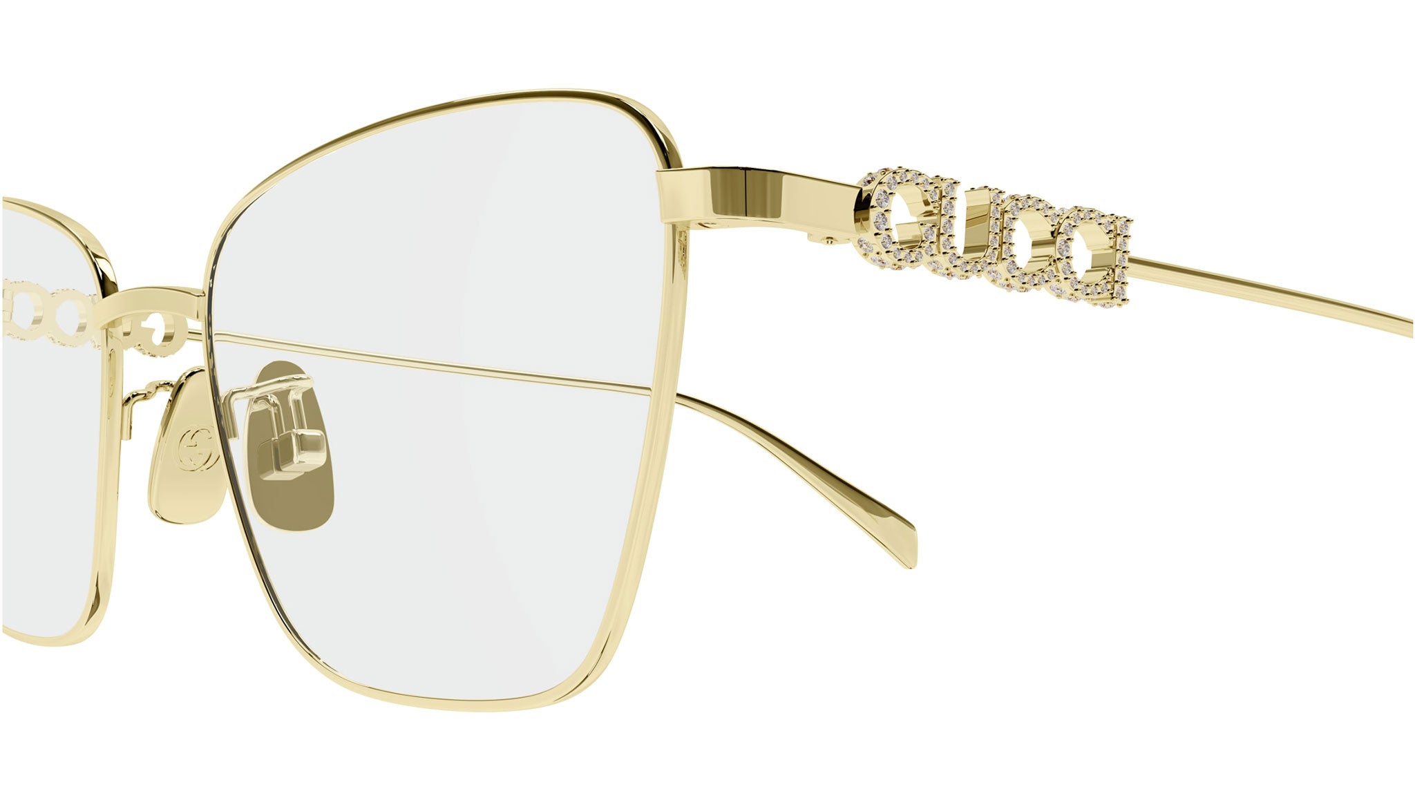 Occhiali da vista Gucci GG1807O 001 donna con montatura butterfly in metallo oro giallo e lenti demo. Linea: Lettering. Codice modello: GG1807O. Codice colore: 001. Made in Japan. Rivenditore autorizzato Gucci online. Gli occhiali vengono consegnati con custodia e accessori originali e sono coperti dalla garanzia ufficiale di 12 mesi del produttore.