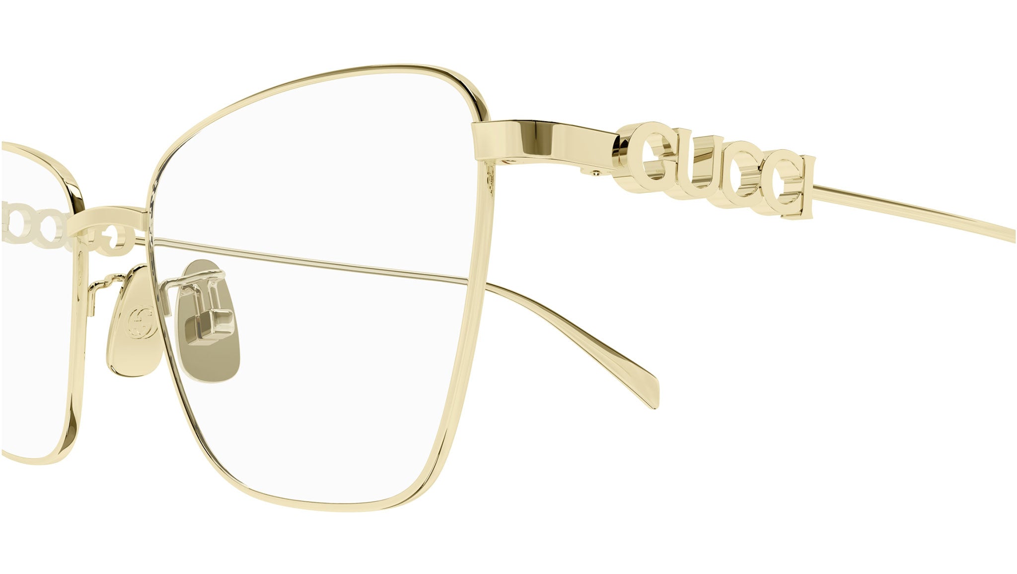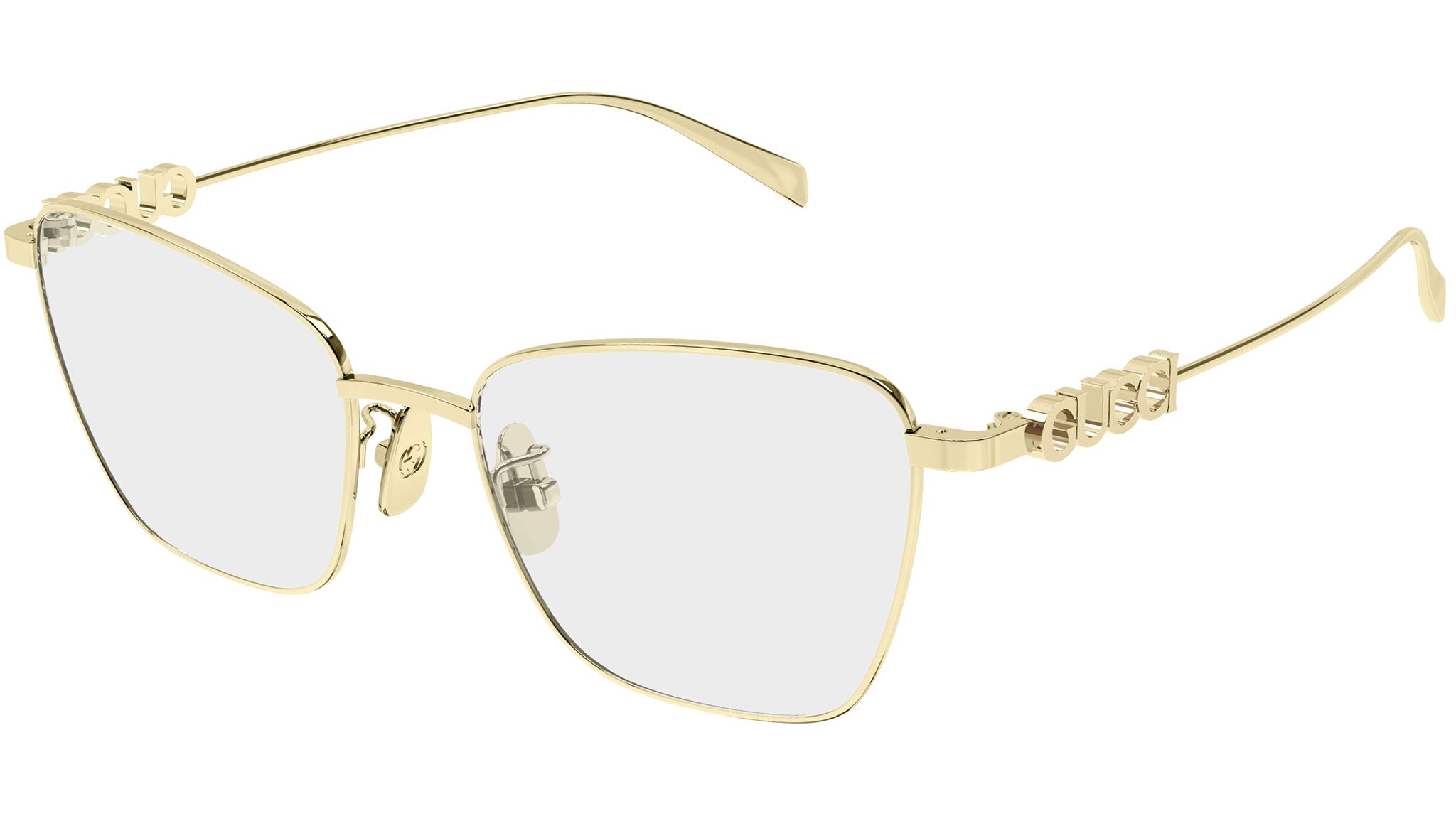 Occhiali da vista Gucci GG1807O 003 donna con montatura butterfly in metallo oro endura e lenti demo. Linea: Lettering. Codice modello: GG1807O. Codice colore: 003. Made in Japan. Rivenditore autorizzato Gucci online. Gli occhiali vengono consegnati con custodia e accessori originali e sono coperti dalla garanzia ufficiale di 12 mesi del produttore.