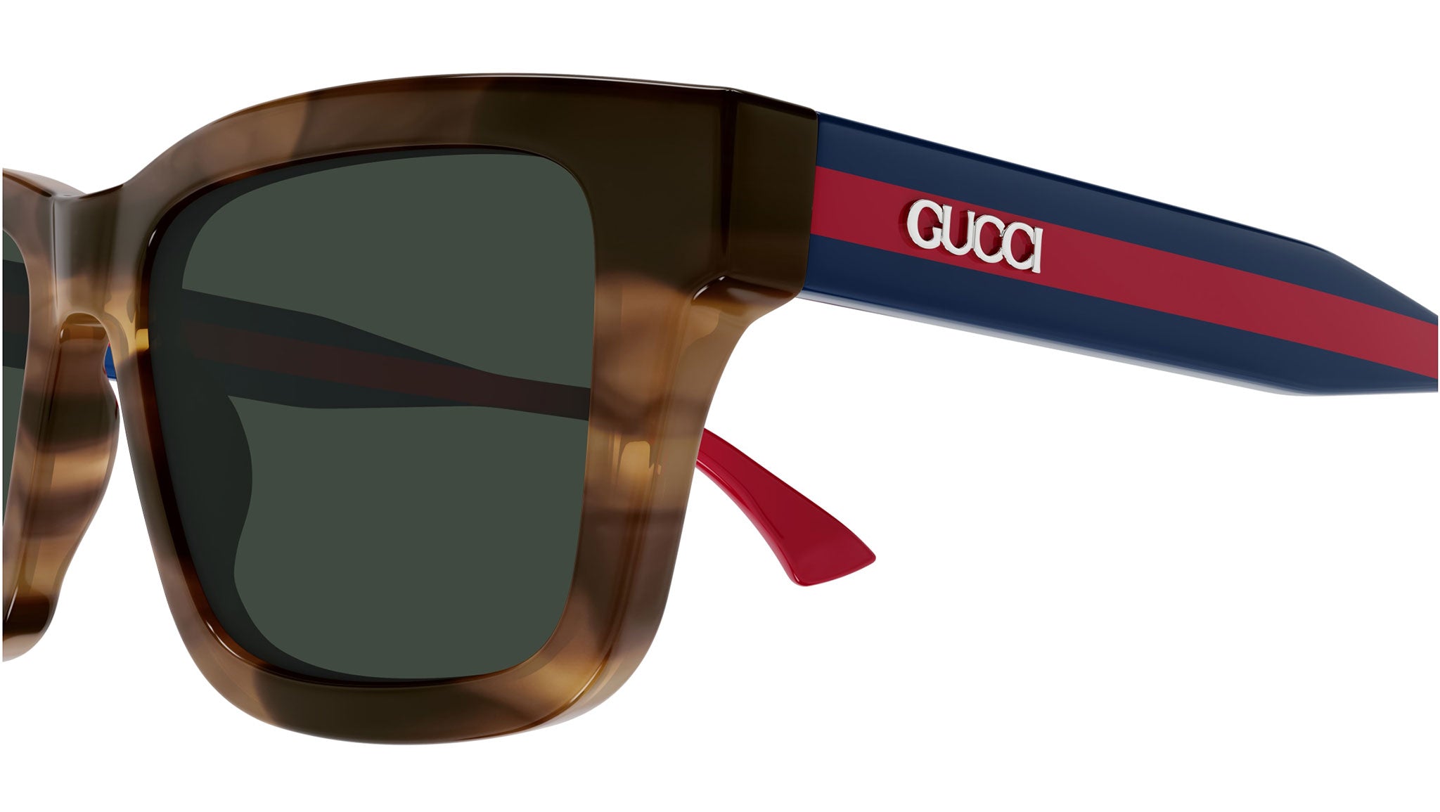 Occhiali da sole Gucci GG1869S 003 uomo con montatura rettangolare in acetato riciclato avana marrone melange e lenti verde scuro tinta unita. Linea: Web. Codice modello: GG1869S. Codice colore: 003. Made in Japan. Rivenditore autorizzato Gucci online. Gli occhiali vengono consegnati con custodia e accessori originali e sono coperti dalla garanzia ufficiale di 12 mesi del produttore.