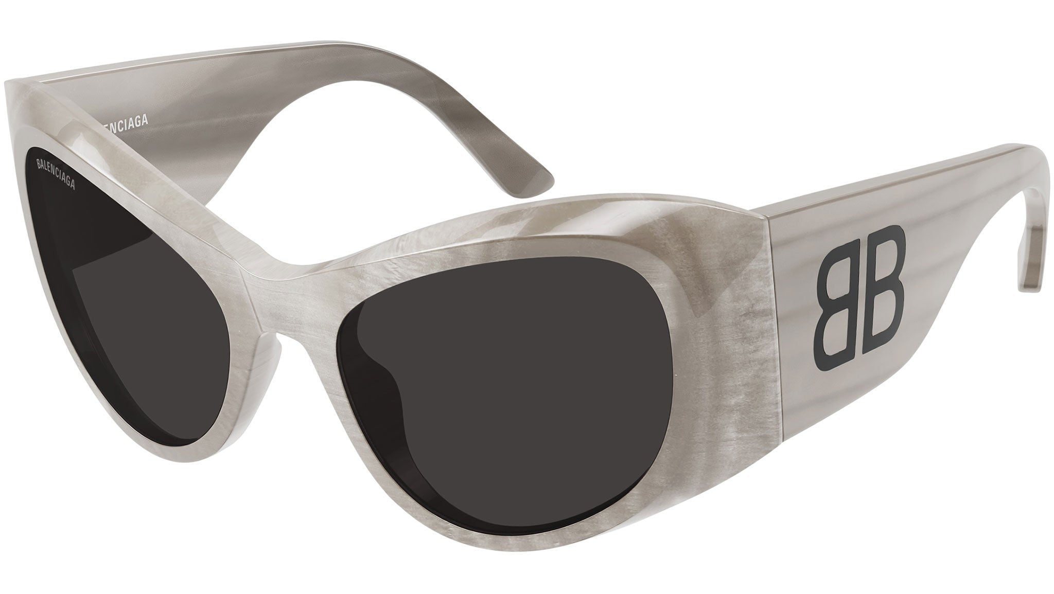 Occhiali da sole Balenciaga BB0393S 004 donna con montatura butterfly in acetato riciclato grigio chiaro perlato e lenti grigio tinta unita. Linea: Everyday. Codice modello: BB0393S. Codice colore: 004. Made in Italy. Rivenditore autorizzato Balenciaga online. Gli occhiali vengono consegnati con custodia e accessori originali e sono coperti dalla garanzia ufficiale di 12 mesi del produttore.