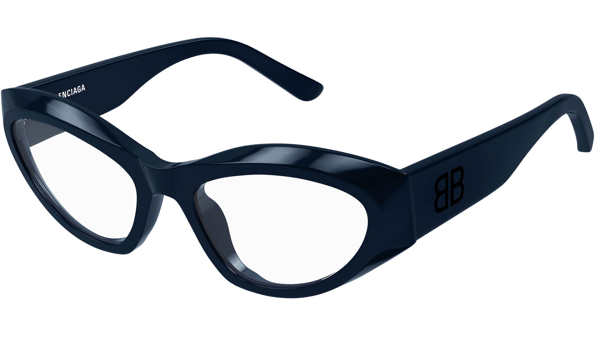 Occhiali da vista Balenciaga BB0400O 004 donna con montatura cat eye in acetato riciclato blu lucido tinta unita e lenti demo. Linea: Everyday. Codice modello: BB0400O. Codice colore: 004. Made in Italy. Rivenditore autorizzato Balenciaga online. Gli occhiali vengono consegnati con custodia e accessori originali e sono coperti dalla garanzia ufficiale di 12 mesi del produttore.