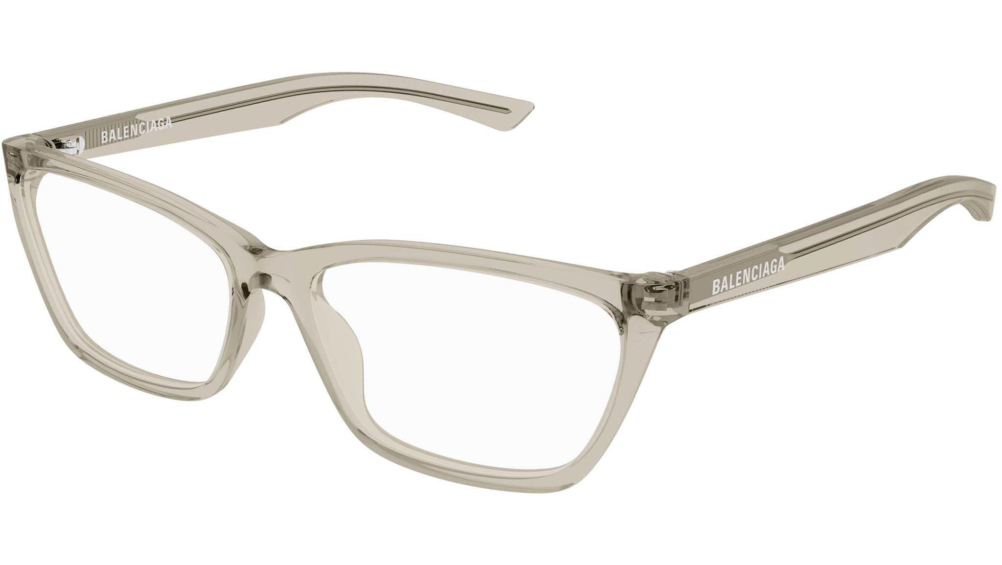 Occhiali da vista Balenciaga BB0406O 004 donna con montatura cat eye in acetato riciclato mandorla trasparente e lenti demo. Linea: Everyday. Codice modello: BB0406O. Codice colore: 004. Made in Italy. Rivenditore autorizzato Balenciaga online. Gli occhiali vengono consegnati con custodia e accessori originali e sono coperti dalla garanzia ufficiale di 12 mesi del produttore.