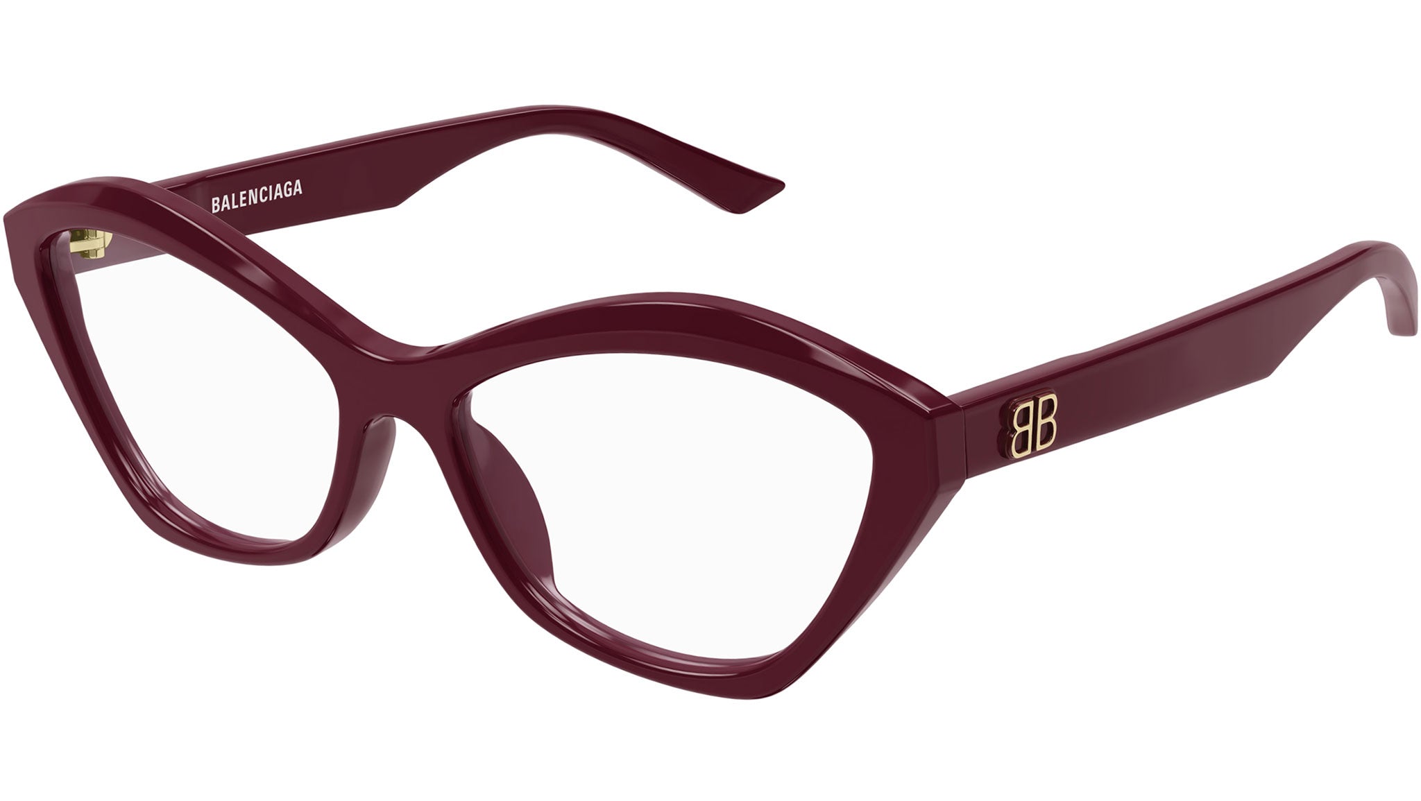 Occhiali da vista Balenciaga BB0341O 006 donna con montatura cat eye in acetato riciclato bordeaux tinta unita lucido e lenti demo. Linea: Everyday. Codice modello: BB0341O. Codice colore: 006. Made in Italy. Rivenditore autorizzato Balenciaga online. Gli occhiali vengono consegnati con custodia e accessori originali e sono coperti dalla garanzia ufficiale di 12 mesi del produttore.
