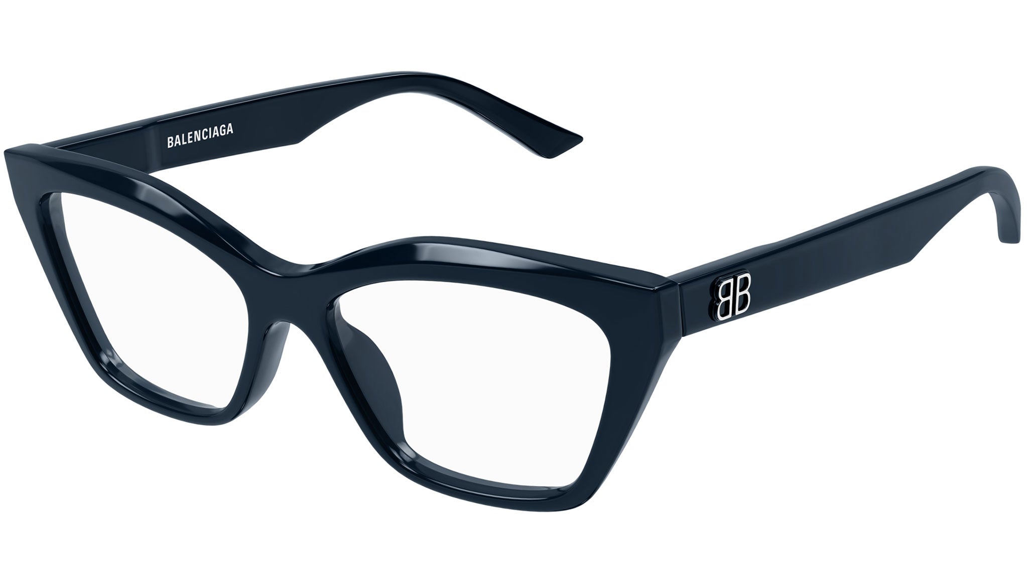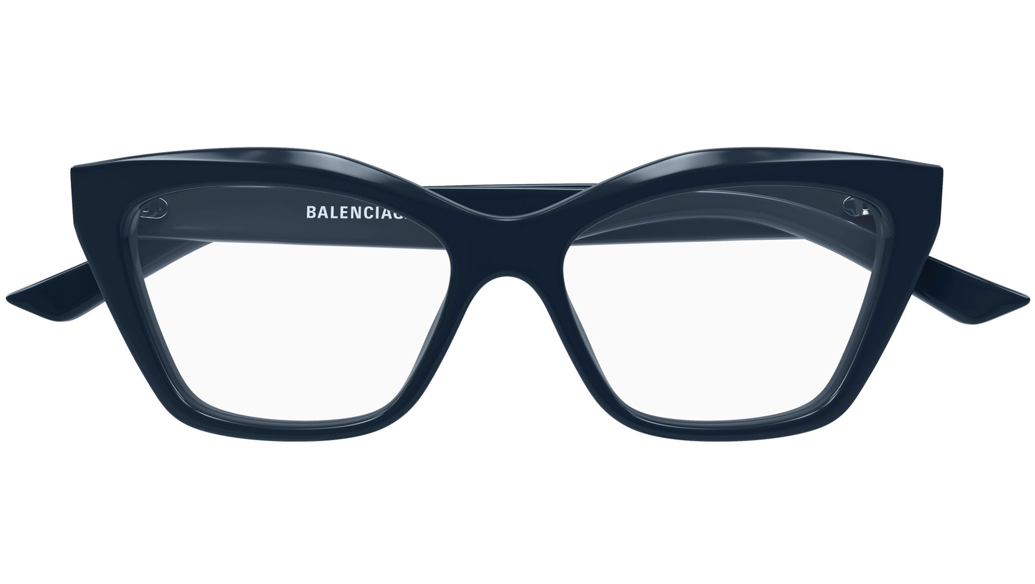Occhiali da vista Balenciaga BB0342O 009 donna con montatura cat eye in acetato riciclato blu lucido tinta unita e lenti demo. Linea: Everyday. Codice modello: BB0342O. Codice colore: 009. Made in Italy. Rivenditore autorizzato Balenciaga online. Gli occhiali vengono consegnati con custodia e accessori originali e sono coperti dalla garanzia ufficiale di 12 mesi del produttore.