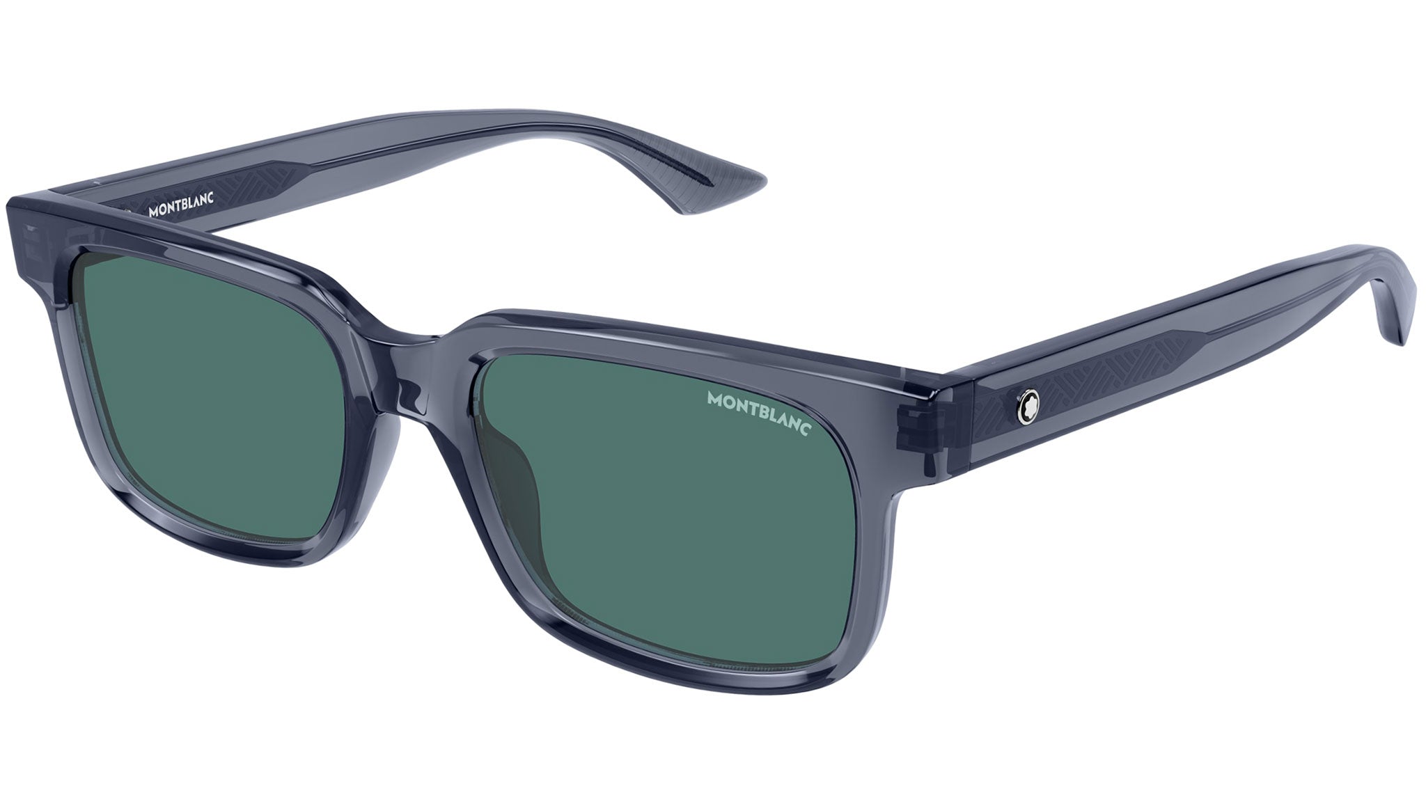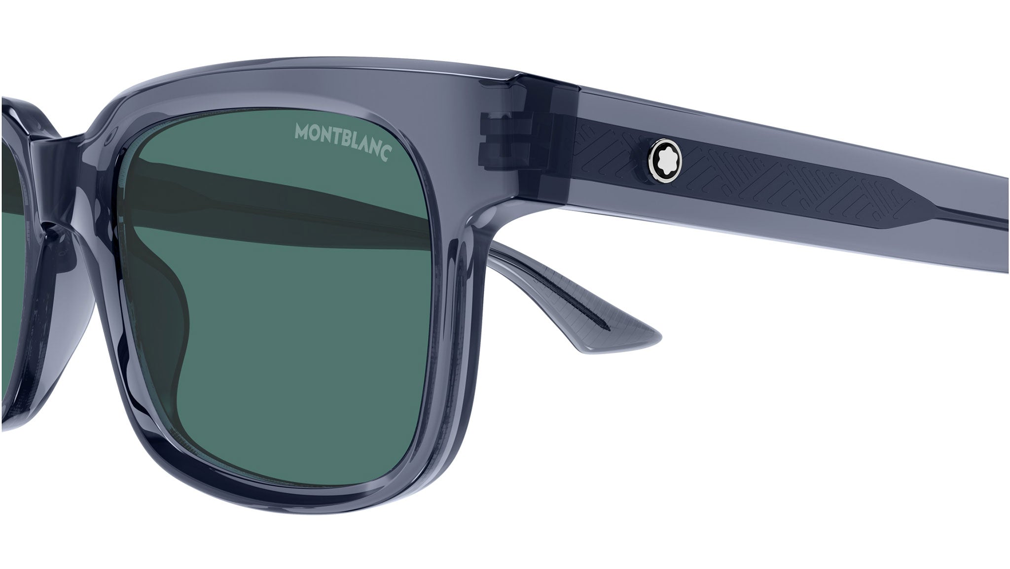 Occhiali da sole Montblanc MB0383S 004 uomo con montatura rettangolare in acetato riciclato grigio trasparente lucido / blu lucido e lenti verde tinta unita. Linea: Snowcap. Codice modello: MB0383S. Codice colore: 004. Made in Italy. Rivenditore autorizzato Montblanc online. Gli occhiali vengono consegnati con custodia e accessori originali e sono coperti dalla garanzia ufficiale di 12 mesi del produttore.