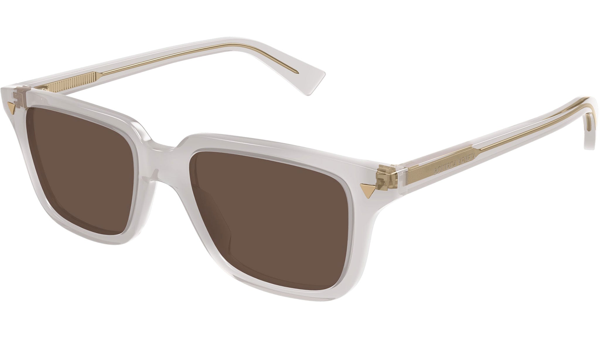 Occhiali da sole Bottega Veneta BV1363S 004 unisex con montatura rettangolare in acetato riciclato tortora trasparente lucido e lenti marrone tinta unita. Linea: Triangle. Codice modello: BV1363S. Codice colore: 004. Made in Italy. Rivenditore autorizzato Bottega Veneta online. Gli occhiali vengono consegnati con custodia e accessori originali e sono coperti dalla garanzia ufficiale di 12 mesi del produttore.