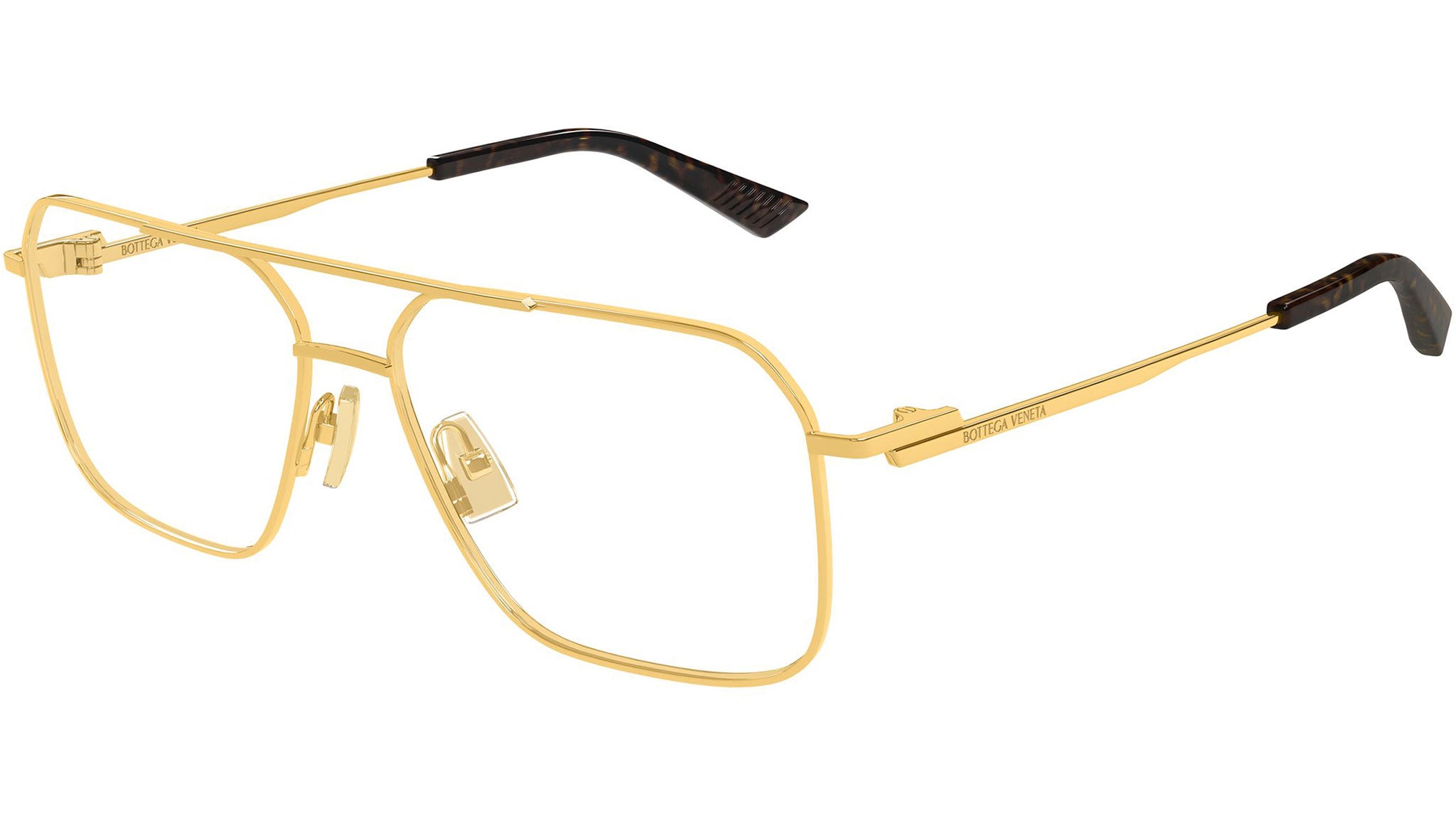 Occhiali da vista Bottega Veneta BV1384O 001 uomo con montatura aviatore in metallo oro lucido e lenti demo. Linea: Ribbon. Codice modello: BV1384O. Codice colore: 001. Made in Italy. Rivenditore autorizzato Bottega Veneta online. Gli occhiali vengono consegnati con custodia e accessori originali e sono coperti dalla garanzia ufficiale di 12 mesi del produttore.