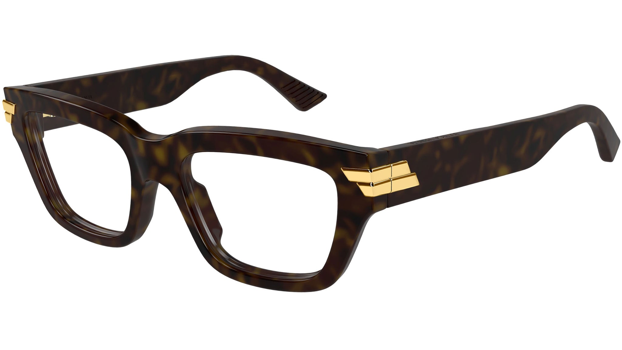 Occhiali da vista Bottega Veneta BV1190O 008 donna con montatura rettangolare in acetato avana scuro lucido e lenti demo. Linea: Unapologetic. Codice modello: BV1190O. Codice colore: 008. Made in Japan. Rivenditore autorizzato Bottega Veneta online. Gli occhiali vengono consegnati con custodia e accessori originali e sono coperti dalla garanzia ufficiale di 12 mesi del produttore.