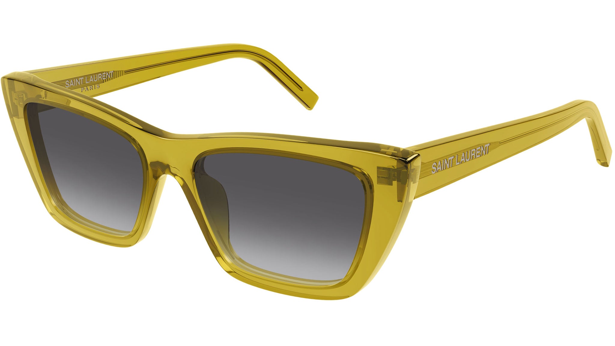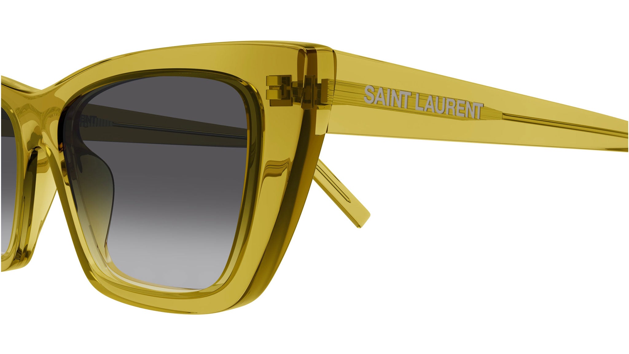Occhiali da sole Saint Laurent SL 276 MICA 062 donna con montatura cat eye in acetato giallo e lenti nero doppia sfumatura grigio. Linea: SL Logo. Codice modello: SL 276 MICA. Codice colore: 062. Made in Italy. Rivenditore autorizzato Saint Laurent online. Gli occhiali vengono consegnati con custodia e accessori originali e sono coperti dalla garanzia ufficiale di 12 mesi del produttore.