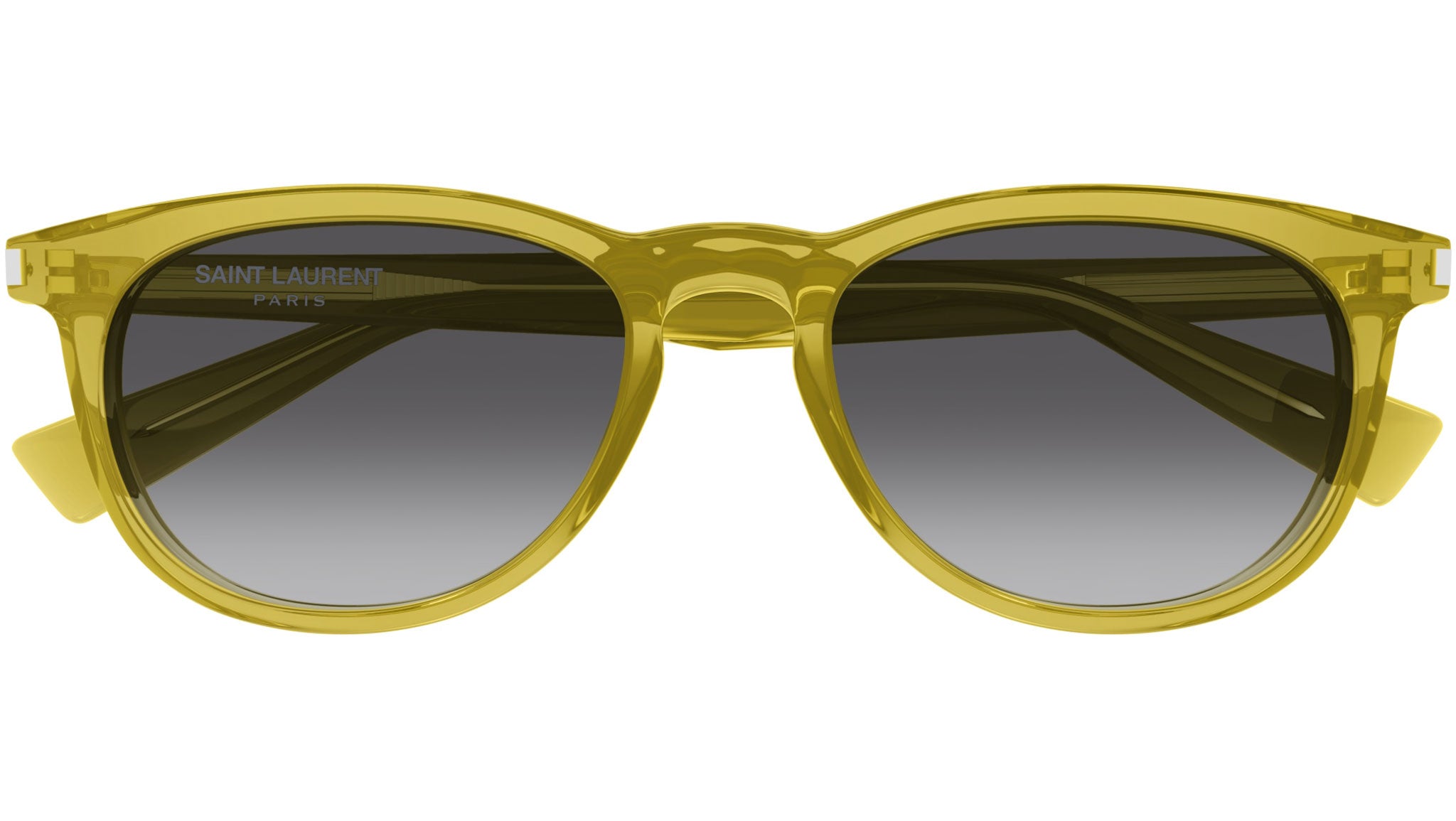 Occhiali da sole Saint Laurent SL 797 005 donna con montatura ovale in acetato riciclato giallo e lenti nero doppia sfumatura grigio. Linea: Corner Angle. Codice modello: SL 797. Codice colore: 005. Made in Italy. Rivenditore autorizzato Saint Laurent online. Gli occhiali vengono consegnati con custodia e accessori originali e sono coperti dalla garanzia ufficiale di 12 mesi del produttore.