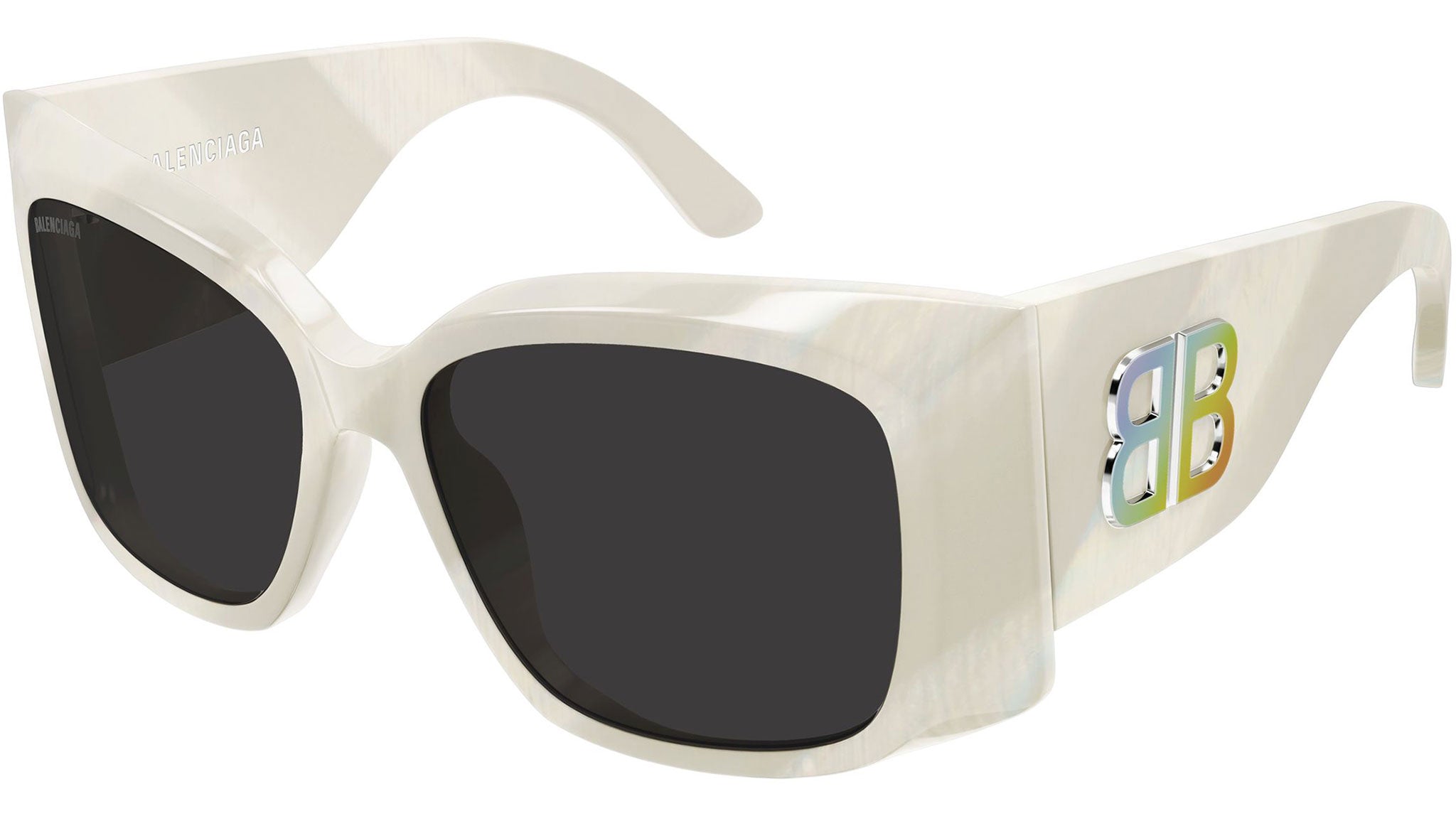 Occhiali da sole Balenciaga BB0443S 003 donna con montatura butterfly in acetato riciclato avorio iridescente madreperla lucido e lenti grigio solido. Linea: Everyday. Codice modello: BB0443S. Codice colore: 003. Made in Italy. Rivenditore autorizzato Balenciaga online. Gli occhiali vengono consegnati con custodia e accessori originali e sono coperti dalla garanzia ufficiale di 12 mesi del produttore.