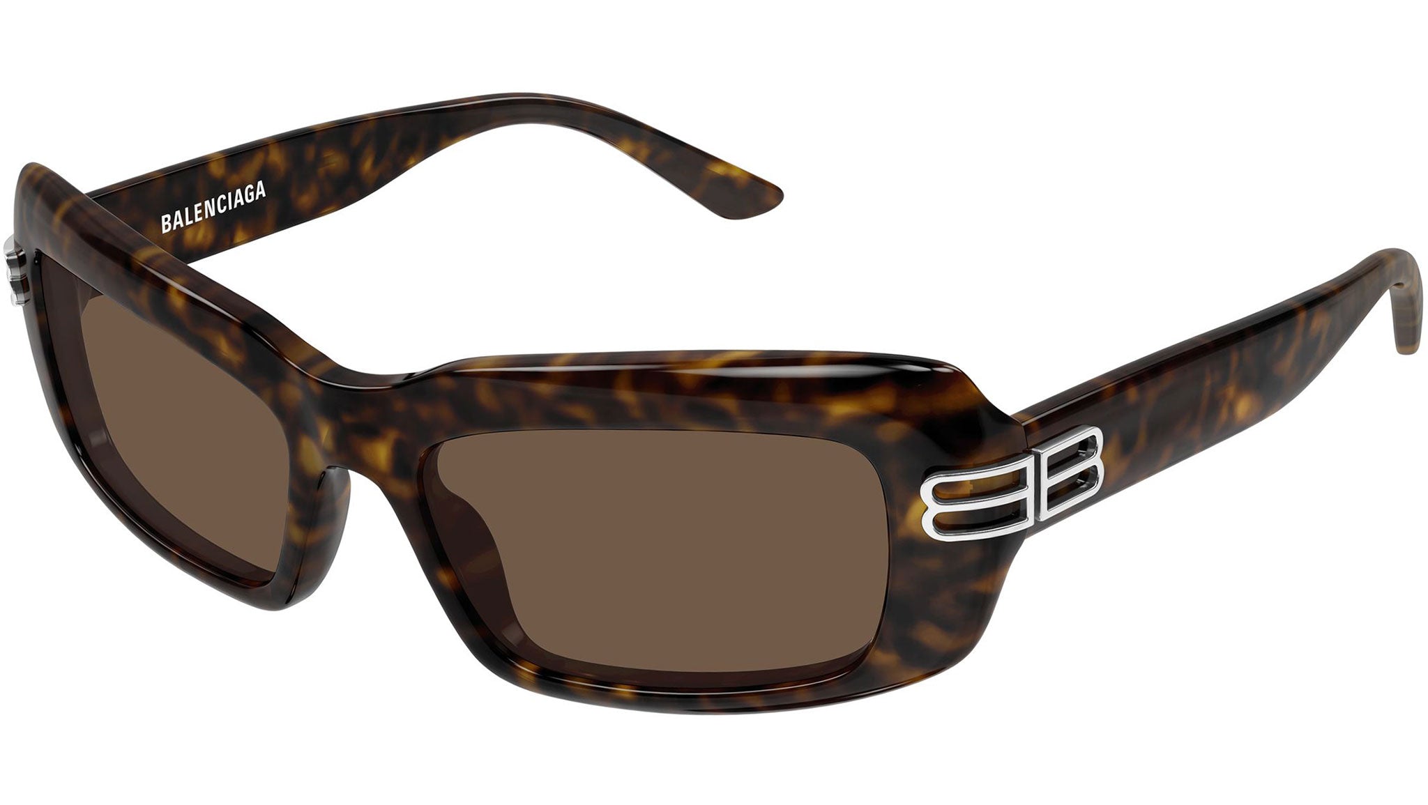 Occhiali da sole Balenciaga BB0432S 002 donna con montatura rettangolare in acetato riciclato avana scuro lucido e lenti marrone solido. Linea: Everyday. Codice modello: BB0432S. Codice colore: 002. Made in Japan. Rivenditore autorizzato Balenciaga online. Gli occhiali vengono consegnati con custodia e accessori originali e sono coperti dalla garanzia ufficiale di 12 mesi del produttore.