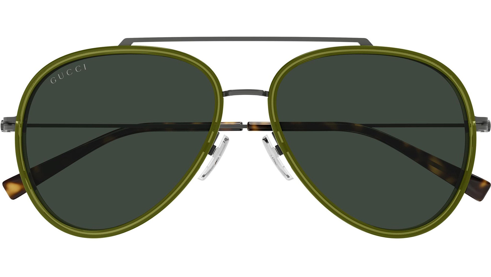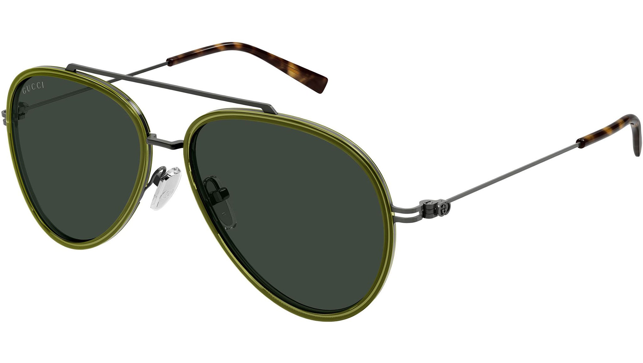 Occhiali da sole Gucci GG1981S 004 uomo con montatura aviatore in inietatto kaki trasparente lucido e lenti verde scuro tinta unita in bio nylon. Linea: Emblem. Codice modello: GG1981S. Codice colore: 004. Made in Japan. Rivenditore autorizzato Gucci online. Gli occhiali vengono consegnati con custodia e accessori originali e sono coperti dalla garanzia ufficiale di 12 mesi del produttore.