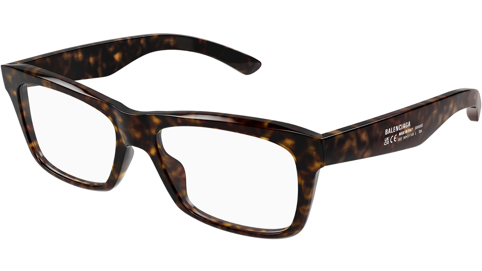 Occhiali da vista Balenciaga BB0426O 002 uomo con montatura rettangolare in acetato riciclato avana scuro lucido e lenti demo. Linea: Everyday. Codice modello: BB0426O. Codice colore: 002. Made in Italy. Rivenditore autorizzato Balenciaga online. Gli occhiali vengono consegnati con custodia e accessori originali e sono coperti dalla garanzia ufficiale di 12 mesi del produttore.