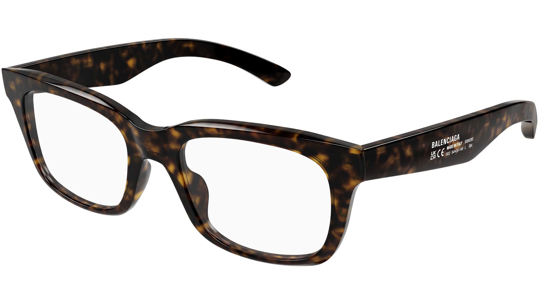 Occhiali da vista Balenciaga BB0429O 002 uomo con montatura rettangolare in acetato riciclato avana scuro lucido e lenti demo. Linea: Everyday. Codice modello: BB0429O. Codice colore: 002. Made in Italy. Rivenditore autorizzato Balenciaga online. Gli occhiali vengono consegnati con custodia e accessori originali e sono coperti dalla garanzia ufficiale di 12 mesi del produttore.