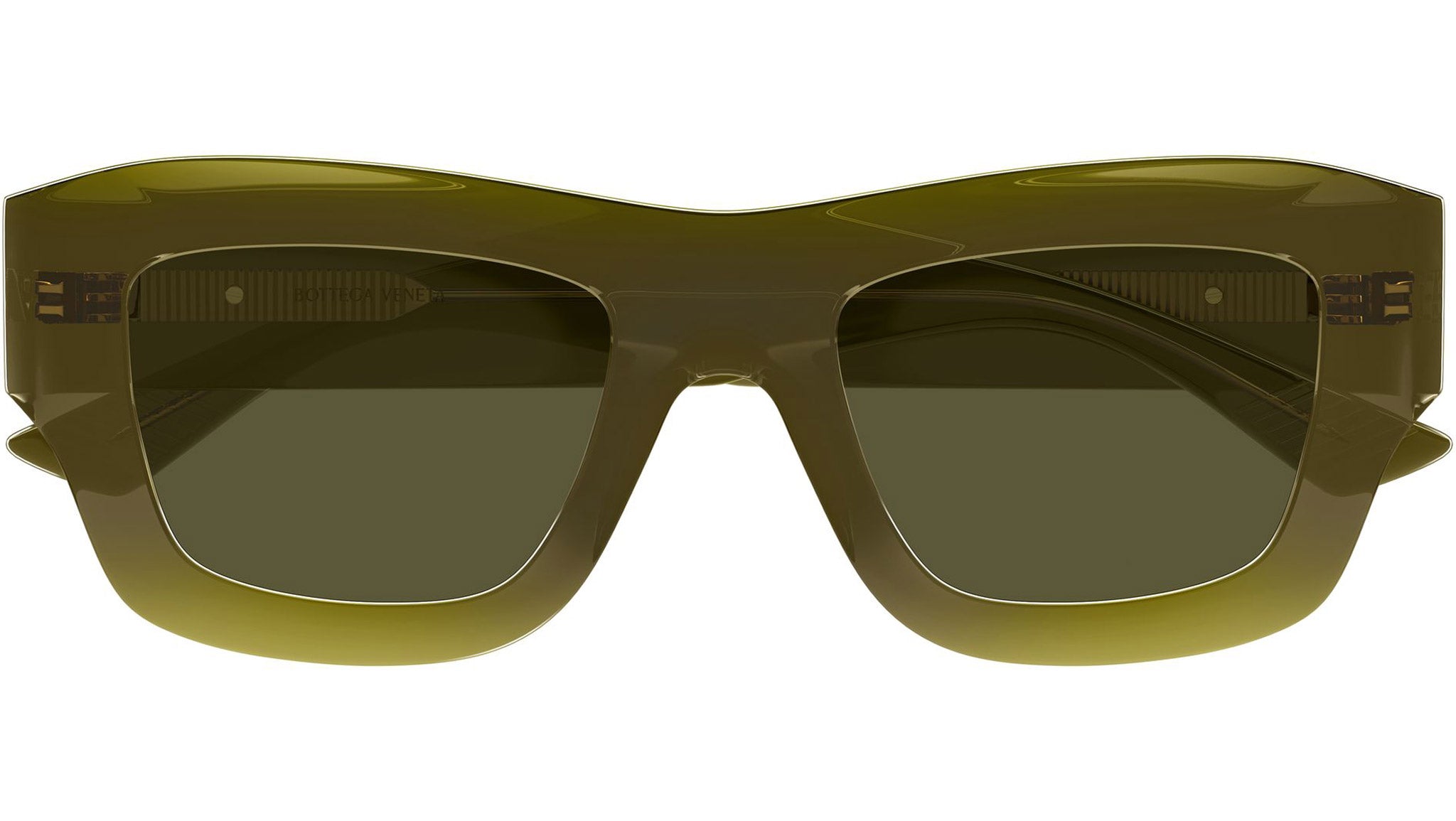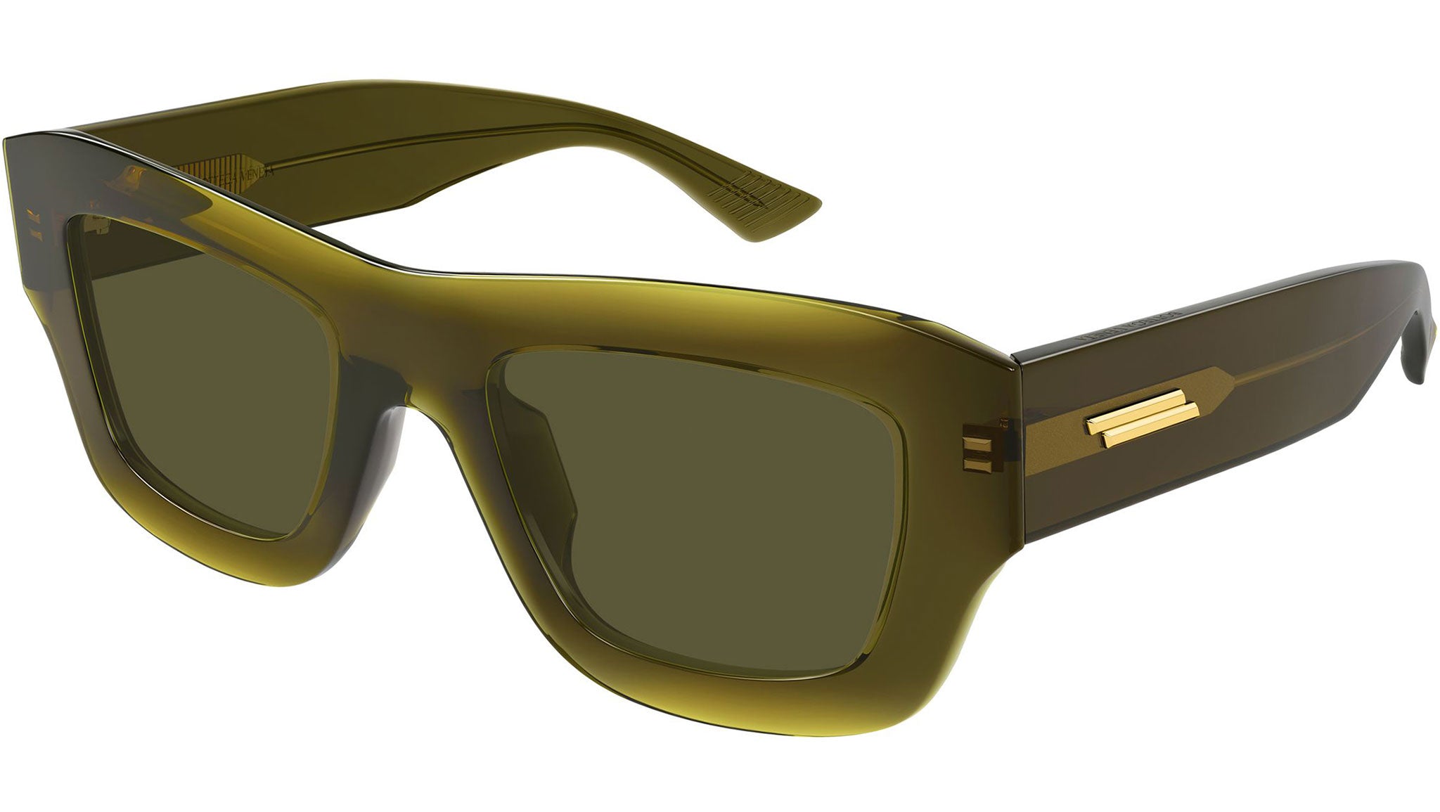 Occhiali da sole Bottega Veneta BV1357S 005 donna con montatura rettangolare in acetato riciclato verde / giallo bilayer trasparente lucido e lenti verde tinta unita. Linea: Ribbon. Codice modello: BV1357S. Codice colore: 005. Made in Italy. Rivenditore autorizzato Bottega Veneta online. Gli occhiali vengono consegnati con custodia e accessori originali e sono coperti dalla garanzia ufficiale di 12 mesi del produttore.