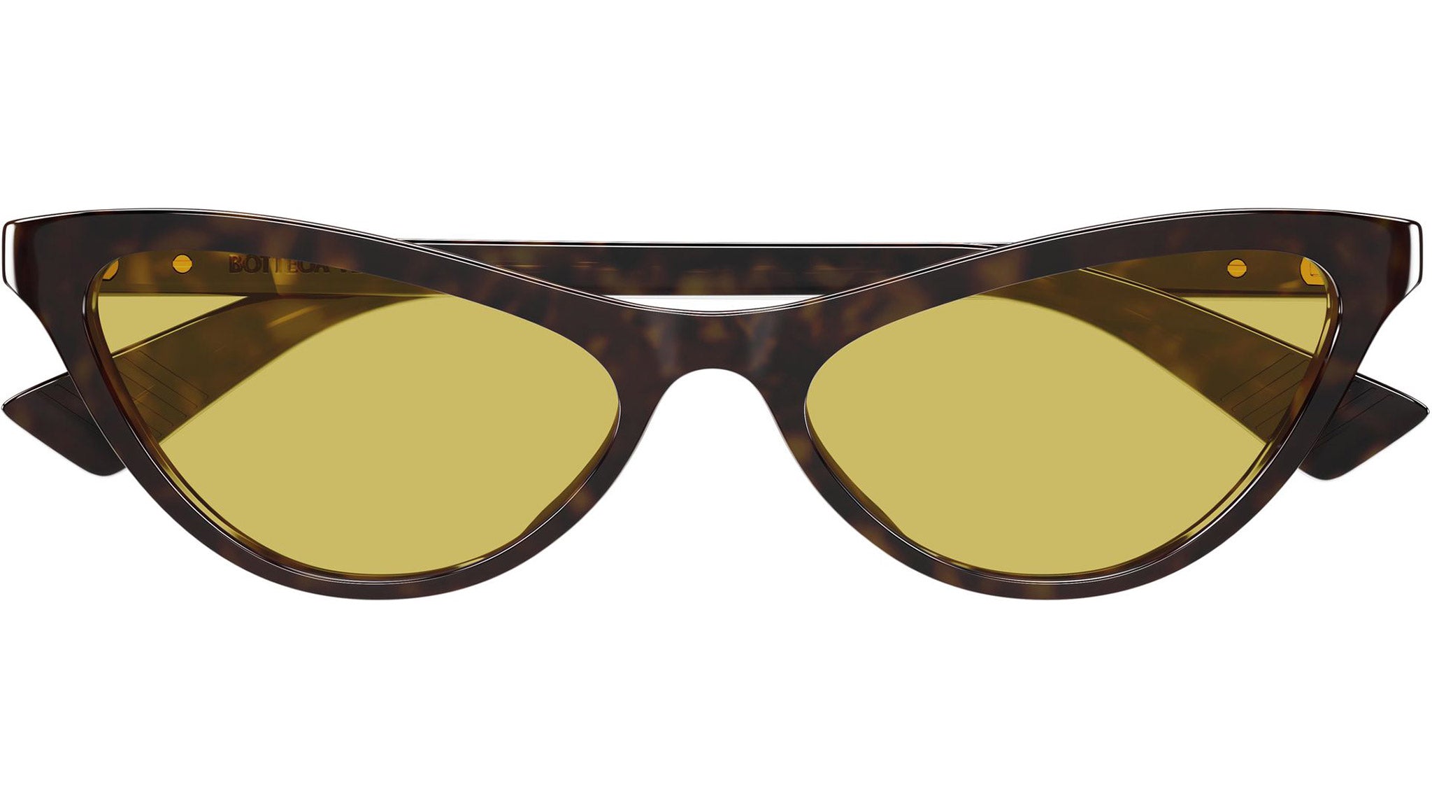 Occhiali da sole Bottega Veneta BV1414S 002 donna con montatura cat eye in acetato riciclato avana scuro lucido e lenti beige nicotina tinta unita. Linea: Ribbon. Codice modello: BV1414S. Codice colore: 002. Made in Italy. Rivenditore autorizzato Bottega Veneta online. Gli occhiali vengono consegnati con custodia e accessori originali e sono coperti dalla garanzia ufficiale di 12 mesi del produttore.