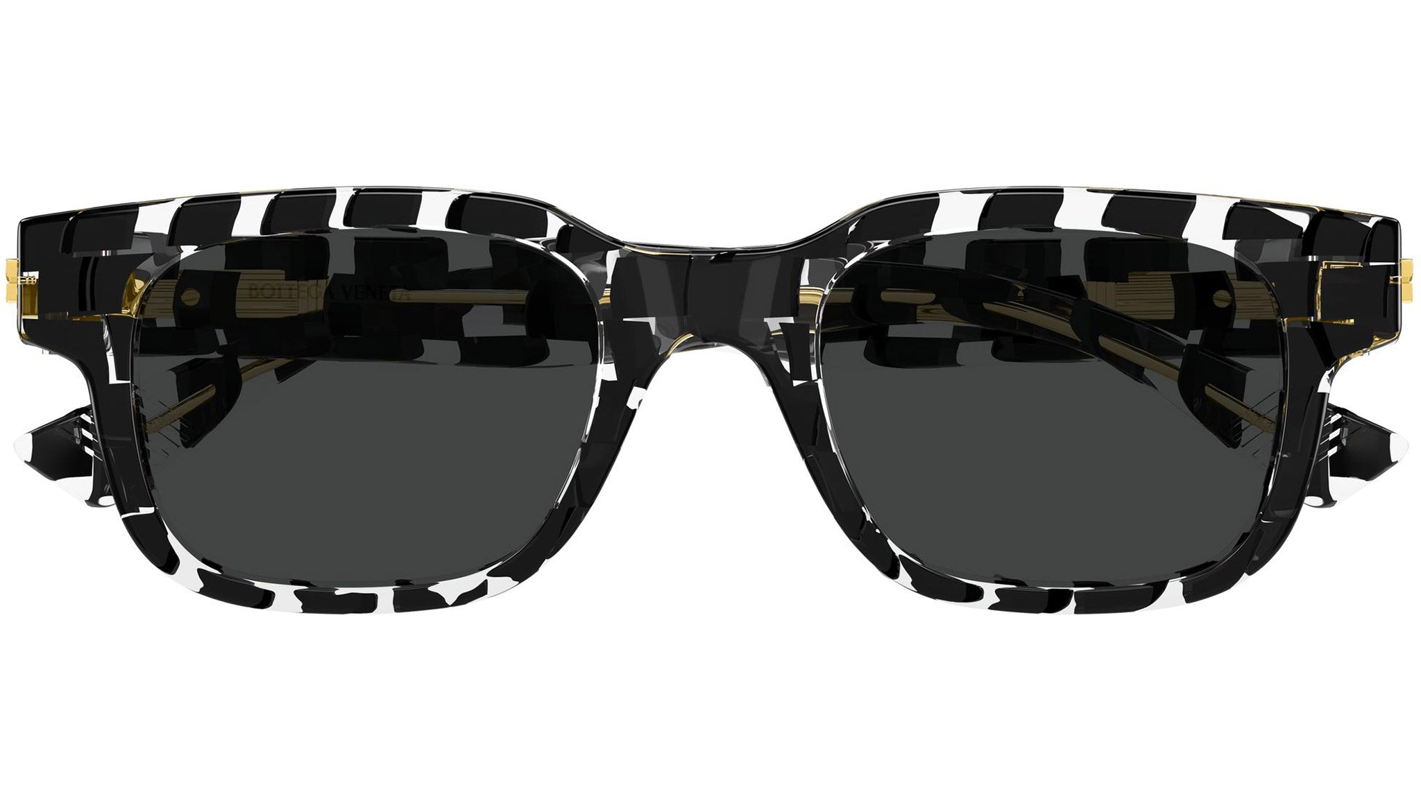 Occhiali da sole Bottega Veneta BV1411S 004 uomo con montatura rettangolare in acetato riciclato nero solido lucido / motivo intreccio cristallo e lenti grigio tinta unita. Linea: Ribbon. Codice modello: BV1411S. Codice colore: 004. Made in Japan. Rivenditore autorizzato Bottega Veneta online. Gli occhiali vengono consegnati con custodia e accessori originali e sono coperti dalla garanzia ufficiale di 12 mesi del produttore.