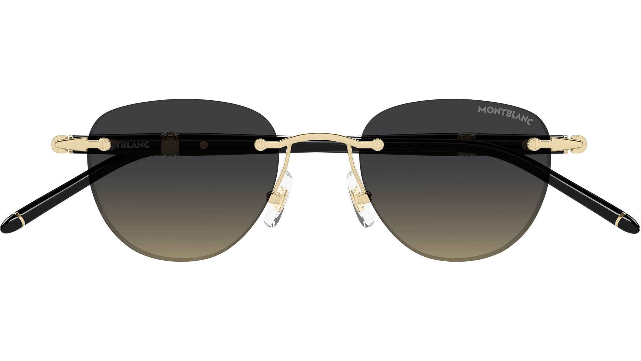Occhiali da sole Montblanc MB0412S 007 uomo con montatura pantos in metallo oro chiaro lucido e lenti doppia sfumatura grigio e arancione. Linea: Meisterstück. Codice modello: MB0412S. Codice colore: 007. Made in Japan. Rivenditore autorizzato Montblanc online. Gli occhiali vengono consegnati con custodia e accessori originali e sono coperti dalla garanzia ufficiale di 12 mesi del produttore.