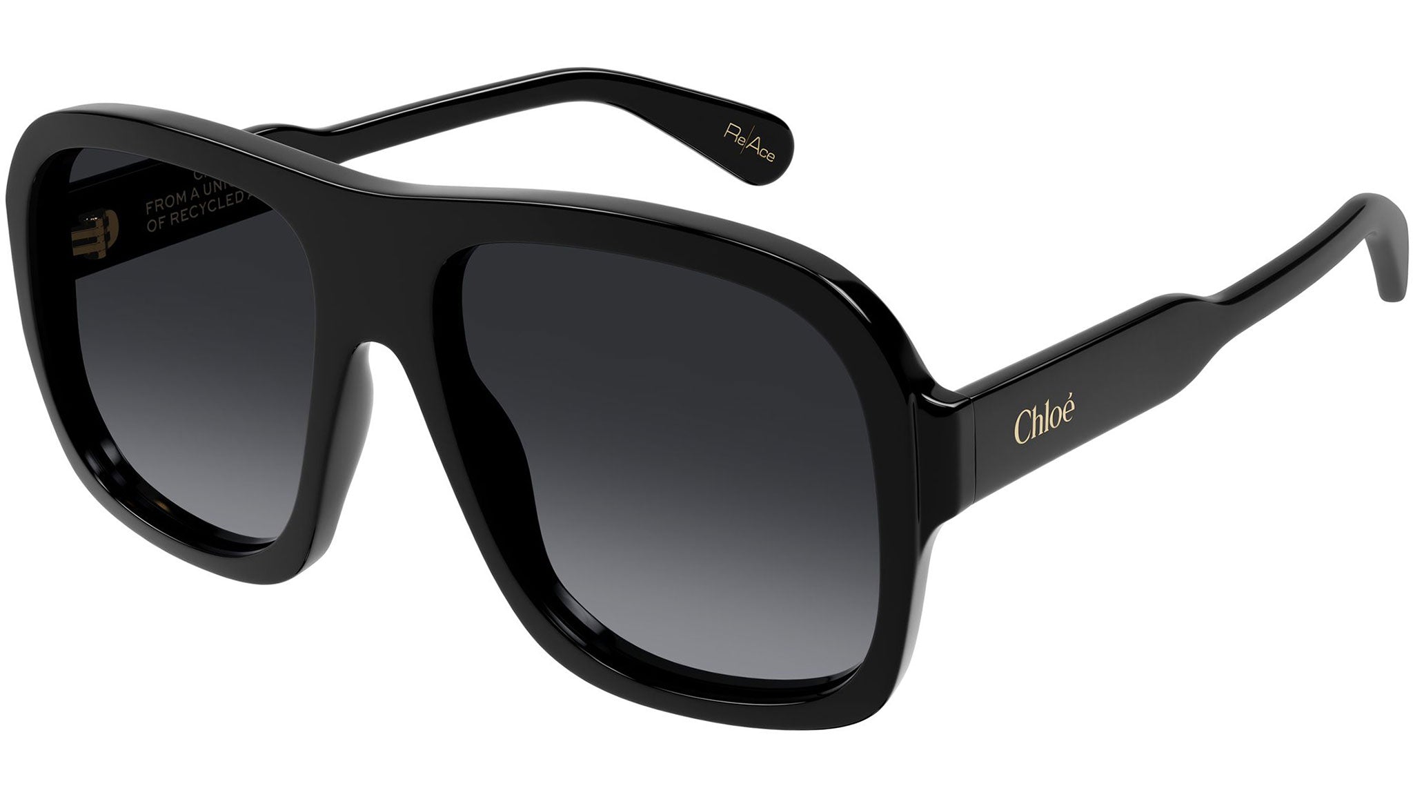 Occhiali da sole Chloé CH0331S 001 donna con montatura aviatore in acetato riciclato nero lucido tinta unita e lenti grigio sfumato. Linea: Chloé. Codice modello: CH0331S. Codice colore: 001. Made in Italy. Rivenditore autorizzato Chloé online. Gli occhiali vengono consegnati con custodia e accessori originali e sono coperti dalla garanzia ufficiale di 12 mesi del produttore.