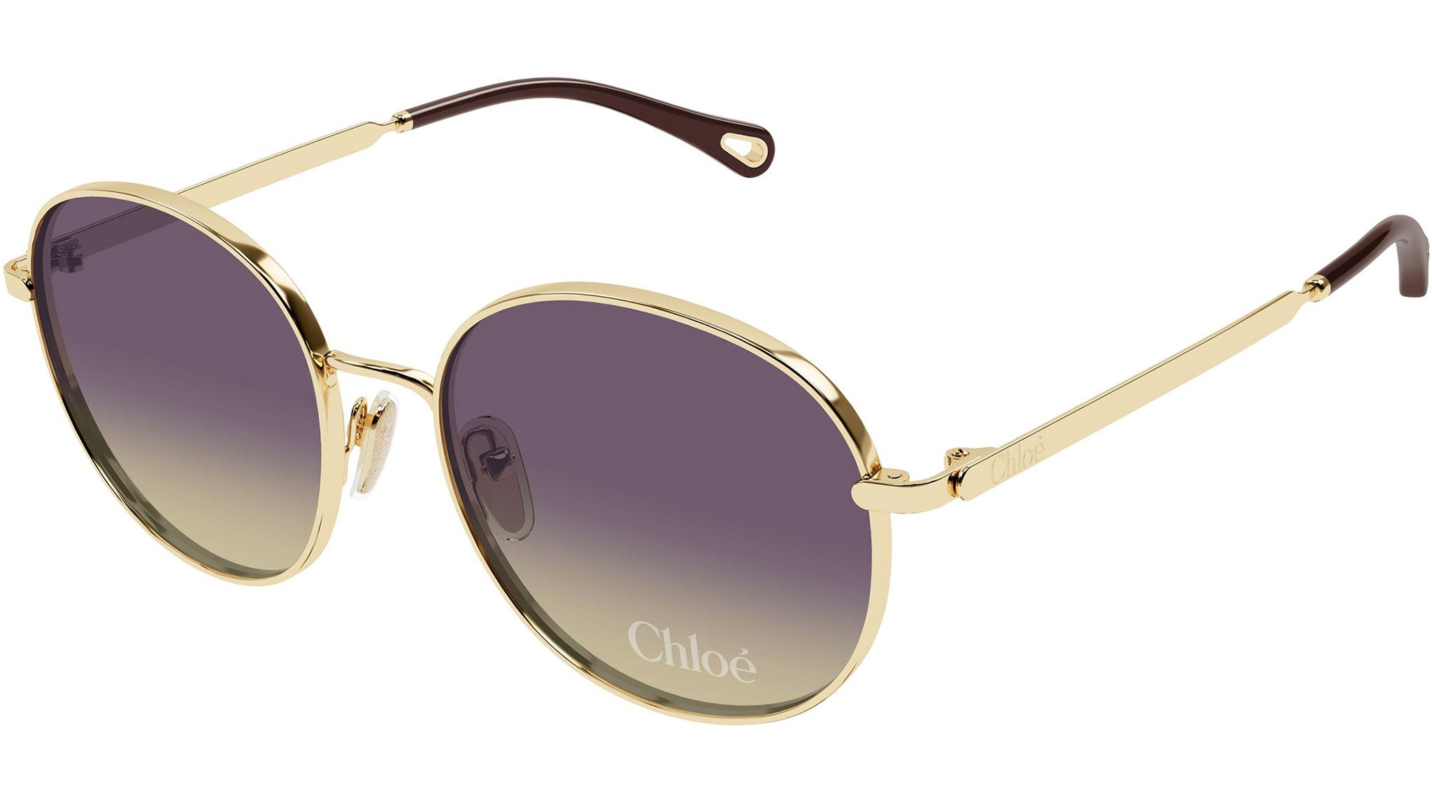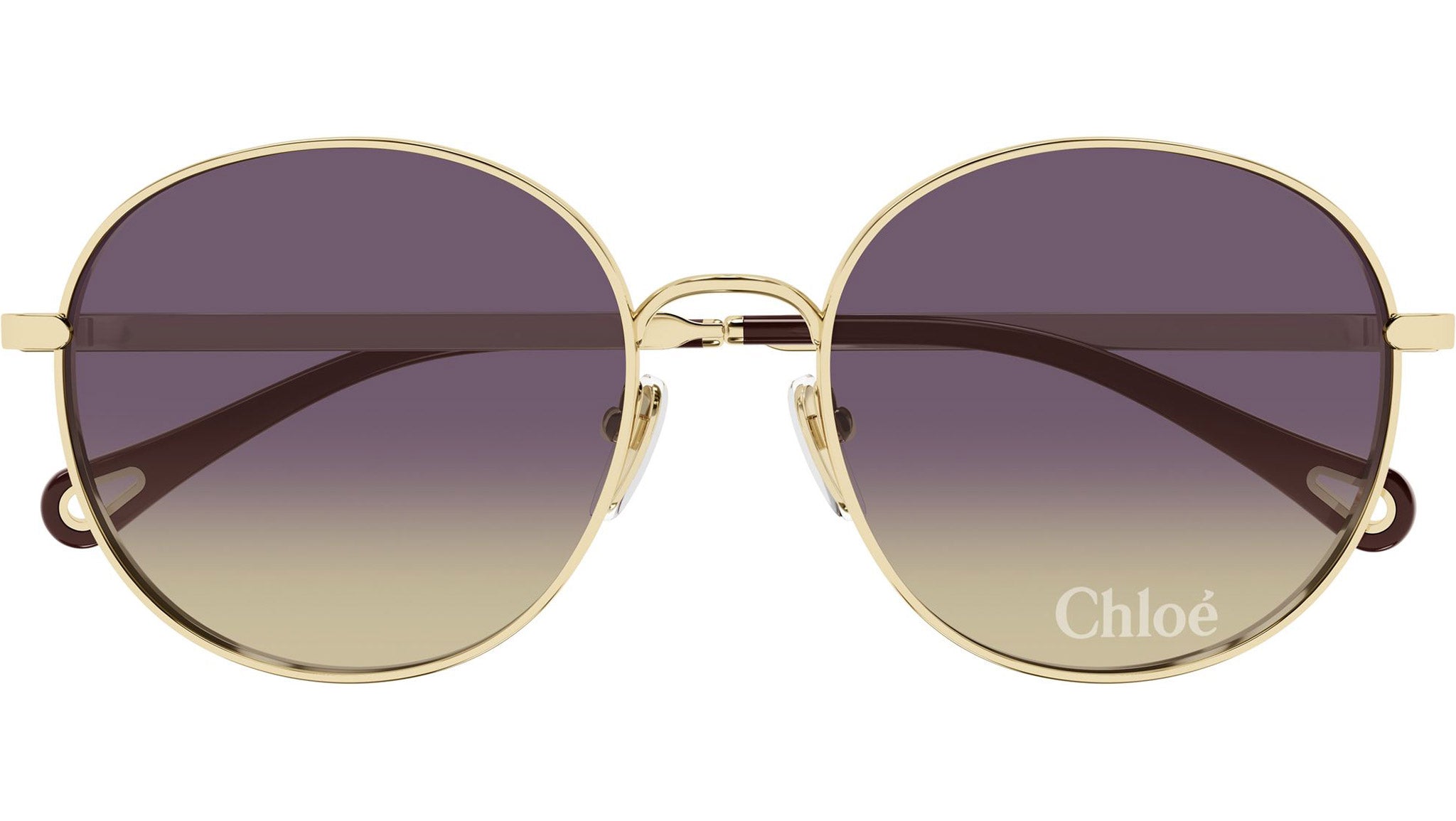 Occhiali da sole Chloé CH0325S 001 donna con montatura geometrica in metallo oro lucido classico e lenti viola sfumato doppio a beige. Linea: Chloé. Codice modello: CH0325S. Codice colore: 001. Made in Italy. Rivenditore autorizzato Chloé online. Gli occhiali vengono consegnati con custodia e accessori originali e sono coperti dalla garanzia ufficiale di 12 mesi del produttore.
