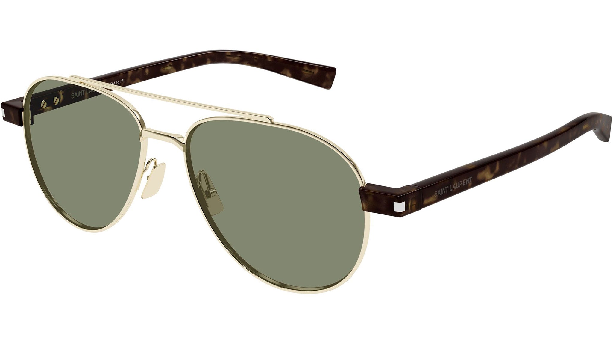 Occhiali da sole Saint Laurent SL 843 003 uomo con montatura ovale in metallo oro chiaro lucido e lenti verde tinta unita. Linea: Corner Angle. Codice modello: SL 843. Codice colore: 003. Made in Japan. Rivenditore autorizzato Saint Laurent online. Gli occhiali vengono consegnati con custodia e accessori originali e sono coperti dalla garanzia ufficiale di 12 mesi del produttore.