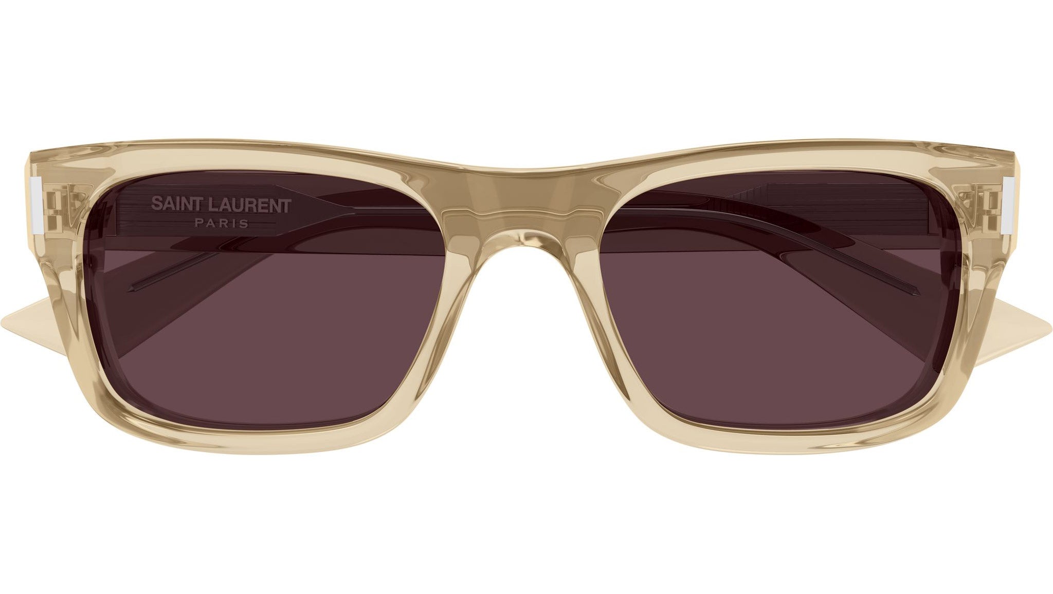 Occhiali da sole Saint Laurent SL 83 005 unisex con montatura rettangolare in acetato riciclato giallo lucido trasparente e lenti viola scuro tinta unita. Linea: Corner Angle. Codice modello: SL 83. Codice colore: 005. Made in Italy. Rivenditore autorizzato Saint Laurent online. Gli occhiali vengono consegnati con custodia e accessori originali e sono coperti dalla garanzia ufficiale di 12 mesi del produttore.