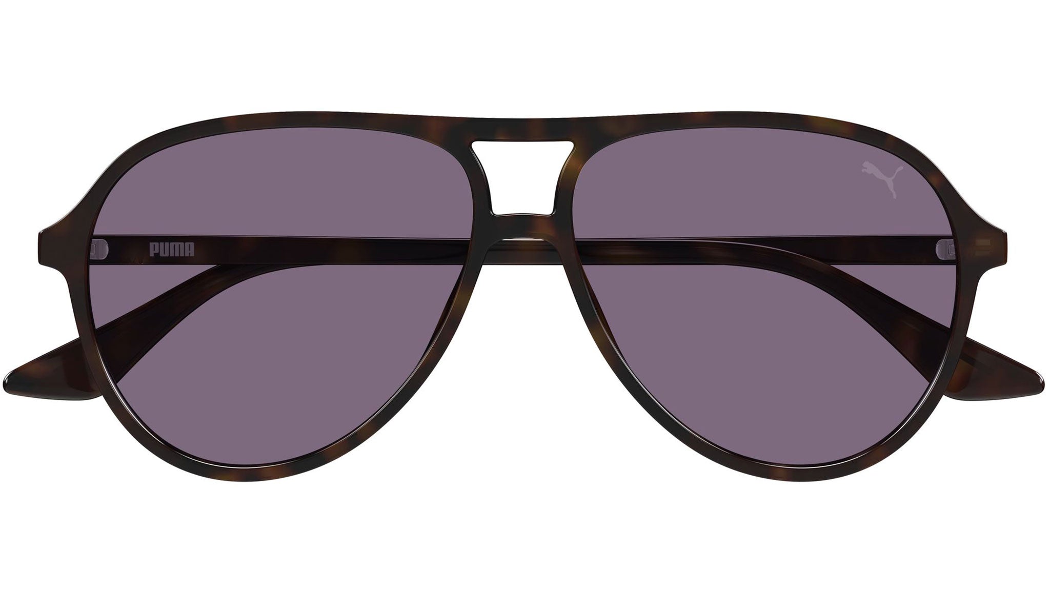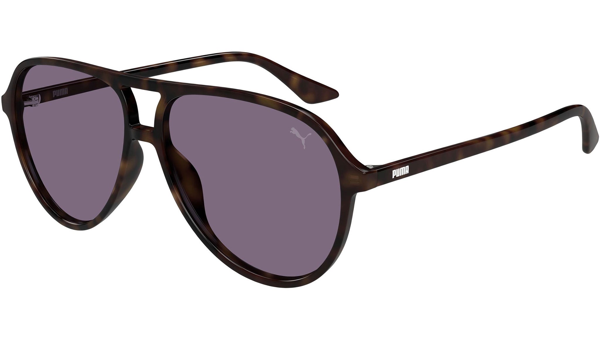 Occhiali da sole Puma PU0523S 003 uomo con montatura aviatore in inietatto avana scuro lucido e lenti viola solido. Linea: Nostalgia. Codice modello: PU0523S. Codice colore: 003. Rivenditore autorizzato Puma online. Gli occhiali vengono consegnati con custodia e accessori originali e sono coperti dalla garanzia ufficiale di 12 mesi del produttore.