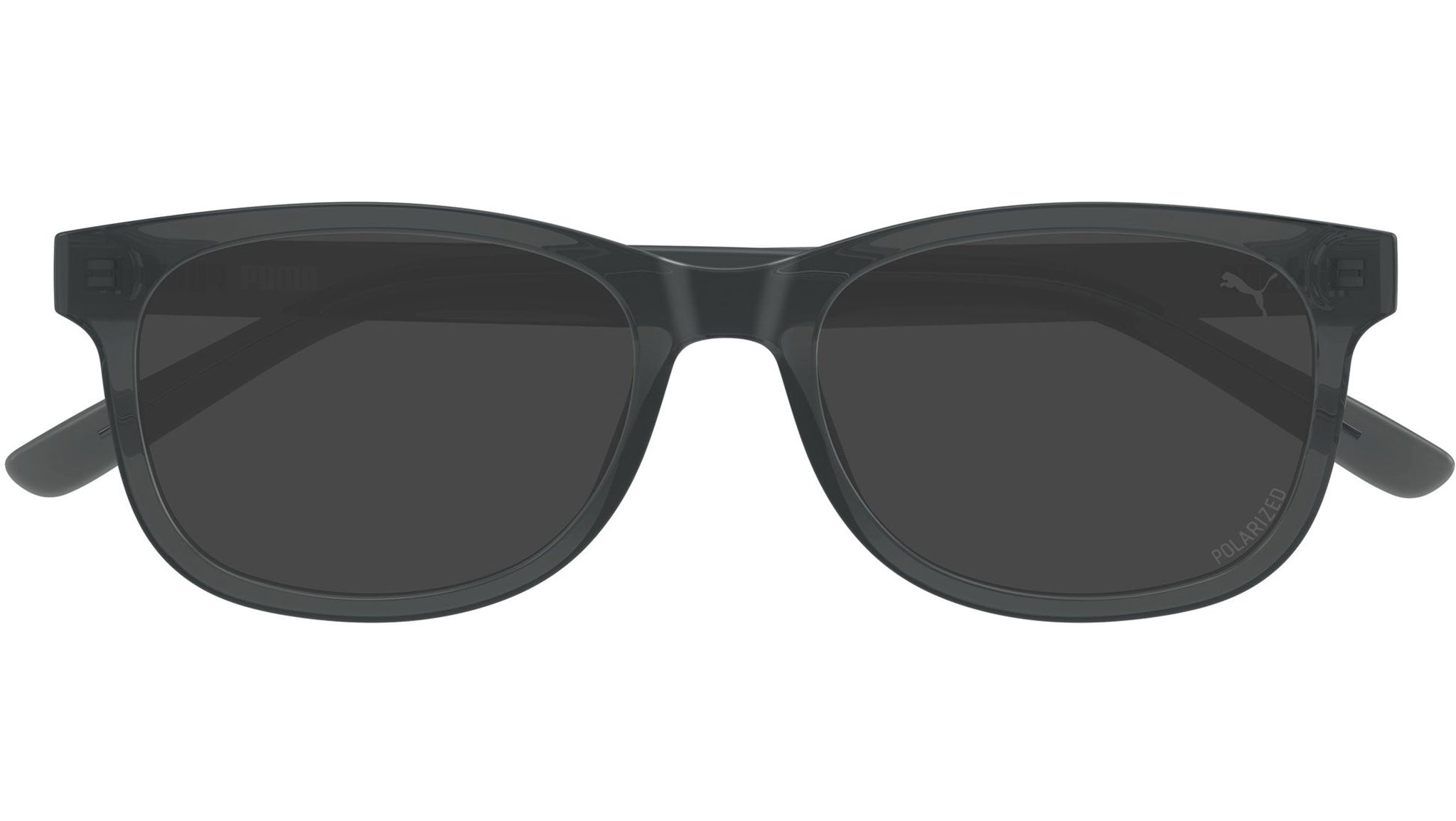 Occhiali da sole Puma PU0526S 002 uomo con montatura rettangolare in inietatto grigio scuro trasparente lucido e lenti grigio solido. Linea: Essential. Codice modello: PU0526S. Codice colore: 002. Rivenditore autorizzato Puma online. Gli occhiali vengono consegnati con custodia e accessori originali e sono coperti dalla garanzia ufficiale di 12 mesi del produttore.