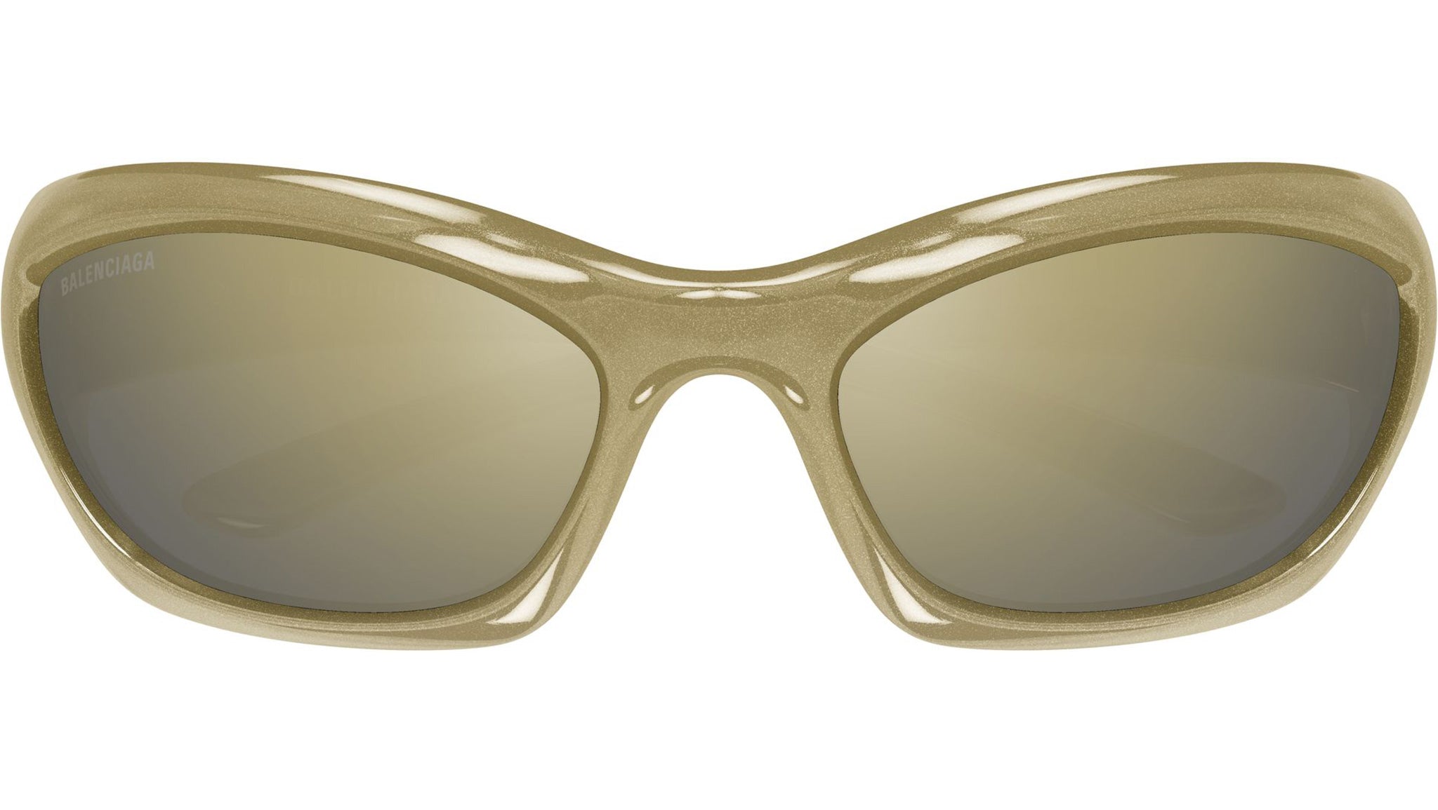 Occhiali da sole Balenciaga BB0463S 002 unisex con montatura geometrica in inietatto verde fango effetto super metallico lucido e lenti fumo solido + flash bronzo. Linea: Extreme. Codice modello: BB0463S. Codice colore: 002. Made in Italy. Rivenditore autorizzato Balenciaga online. Gli occhiali vengono consegnati con custodia e accessori originali e sono coperti dalla garanzia ufficiale di 12 mesi del produttore.