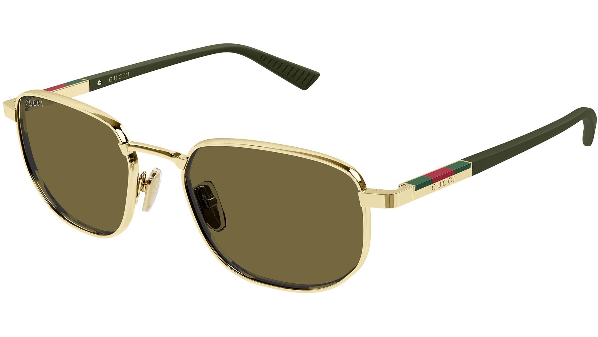 Occhiali da sole Gucci GG2093S 003 uomo con montatura rettangolare in metallo oro endura lucido e lenti verde kaki tinta unita in bio nylon. Linea: Sign. Codice modello: GG2093S. Codice colore: 003. Made in Italy. Rivenditore autorizzato Gucci online. Gli occhiali vengono consegnati con custodia e accessori originali e sono coperti dalla garanzia ufficiale di 12 mesi del produttore.