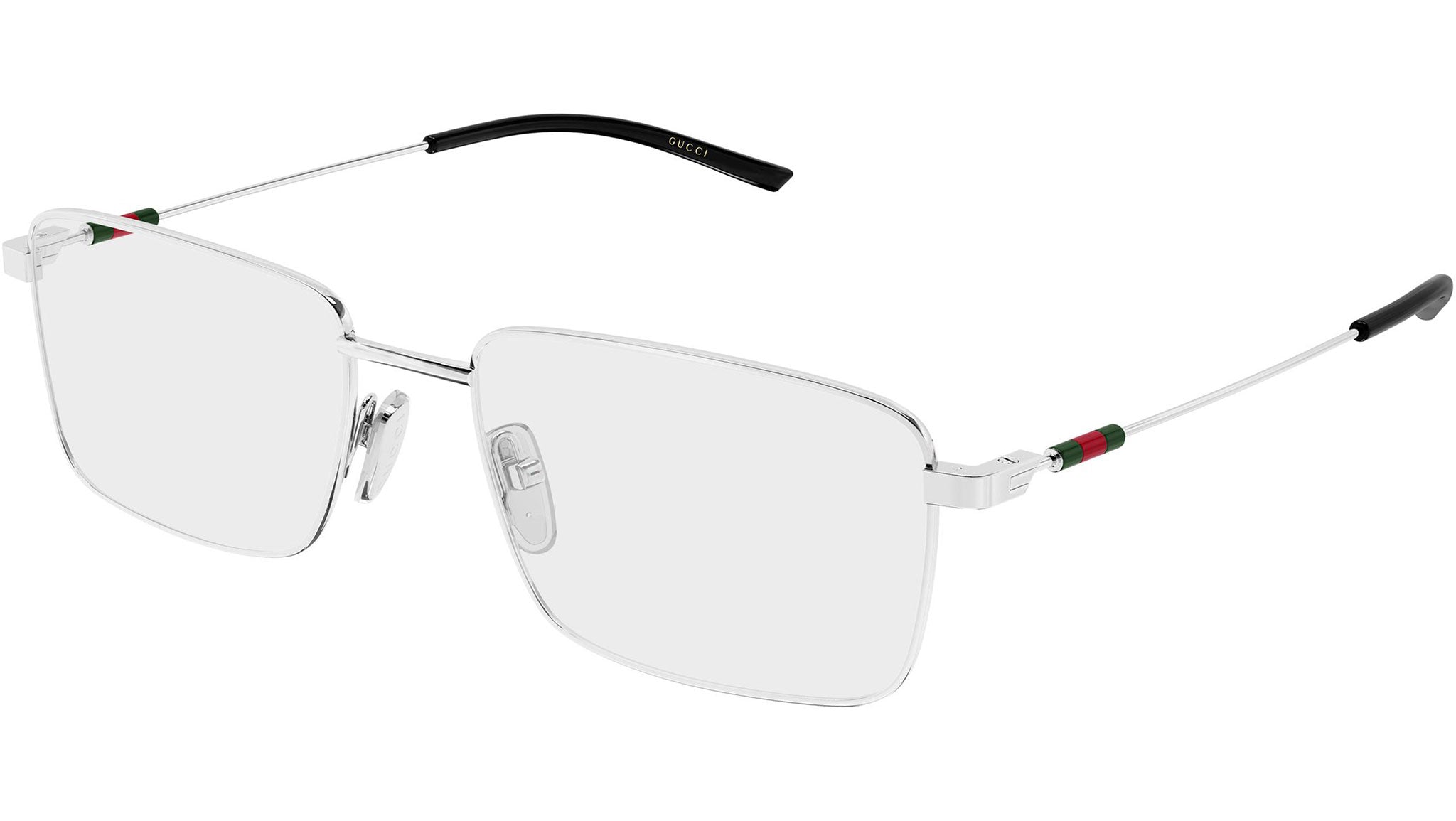 Occhiali da vista Gucci GG2098O 001 uomo con montatura rettangolare in metallo argento lucido e lenti demo. Linea: Sign. Codice modello: GG2098O. Codice colore: 001. Made in Italy. Rivenditore autorizzato Gucci online. Gli occhiali vengono consegnati con custodia e accessori originali e sono coperti dalla garanzia ufficiale di 12 mesi del produttore.