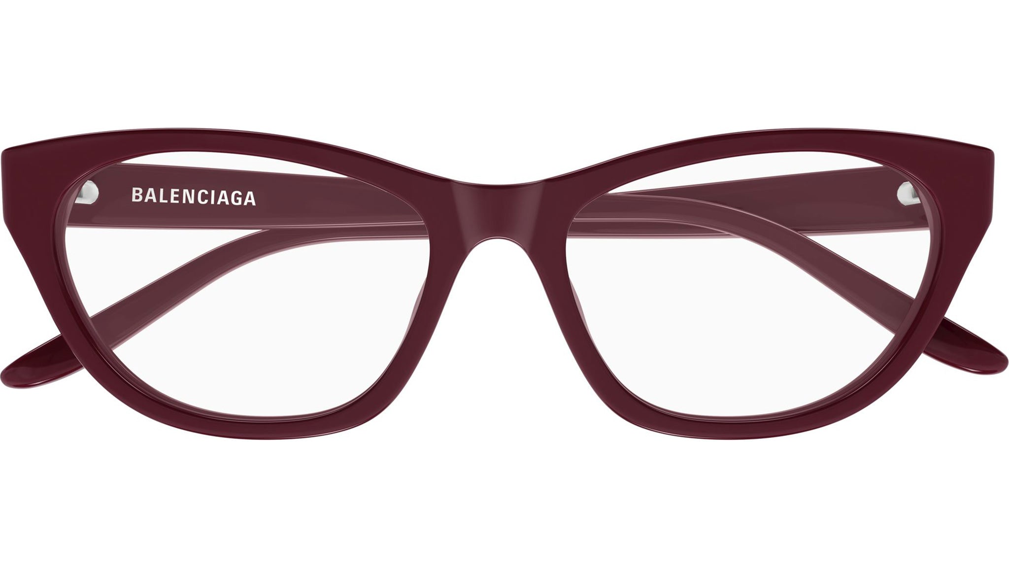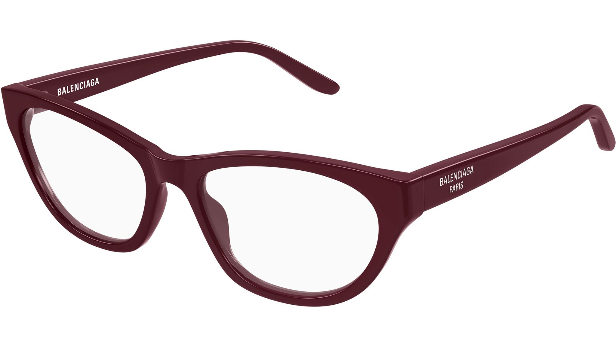Occhiali da vista Balenciaga BB0500O 006 donna con montatura cat eye in acetato riciclato bordeaux solido lucido e lenti demo. Linea: Everyday. Codice modello: BB0500O. Codice colore: 006. Made in Japan. Rivenditore autorizzato Balenciaga online. Gli occhiali vengono consegnati con custodia e accessori originali e sono coperti dalla garanzia ufficiale di 12 mesi del produttore.